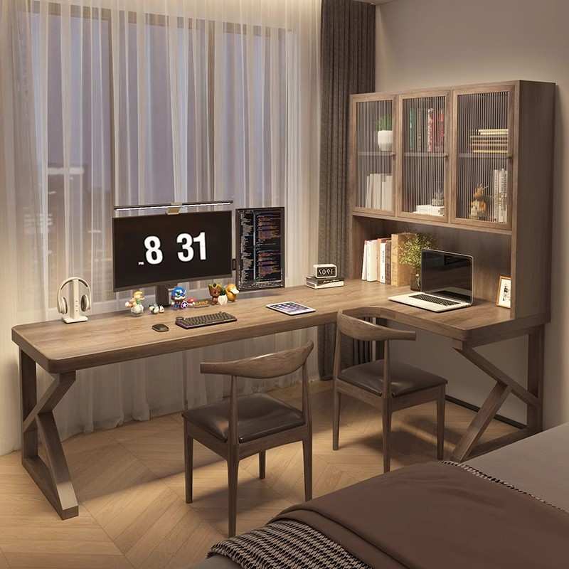严选风实木电脑桌转角书桌书柜一体儿童学习写字工作台l型办公桌