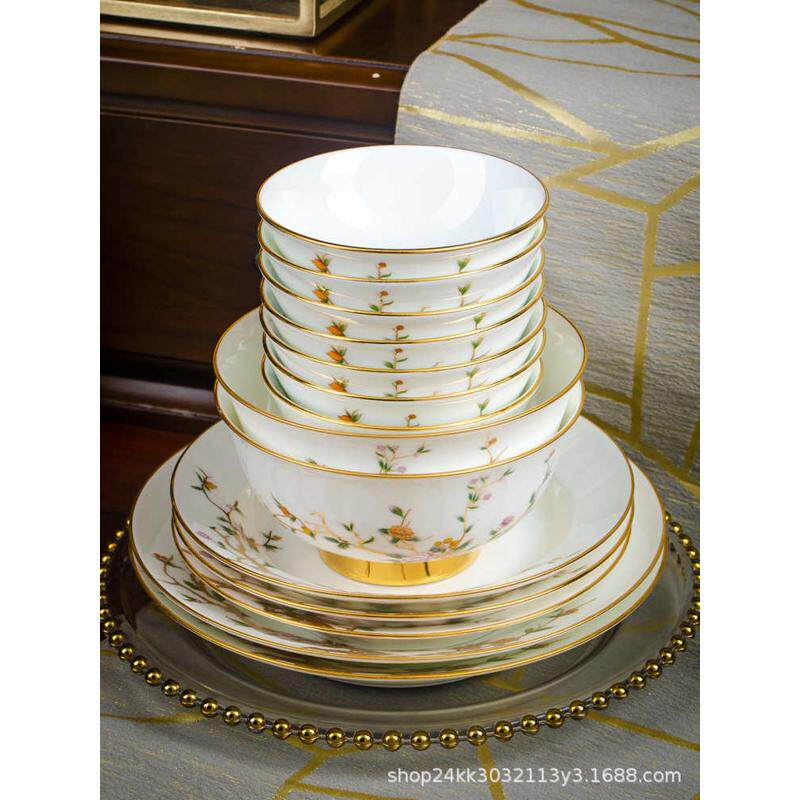 新景德镇彩碗碟餐具珐琅头套装骨瓷风格陶瓷器家用高档奢中式62轻