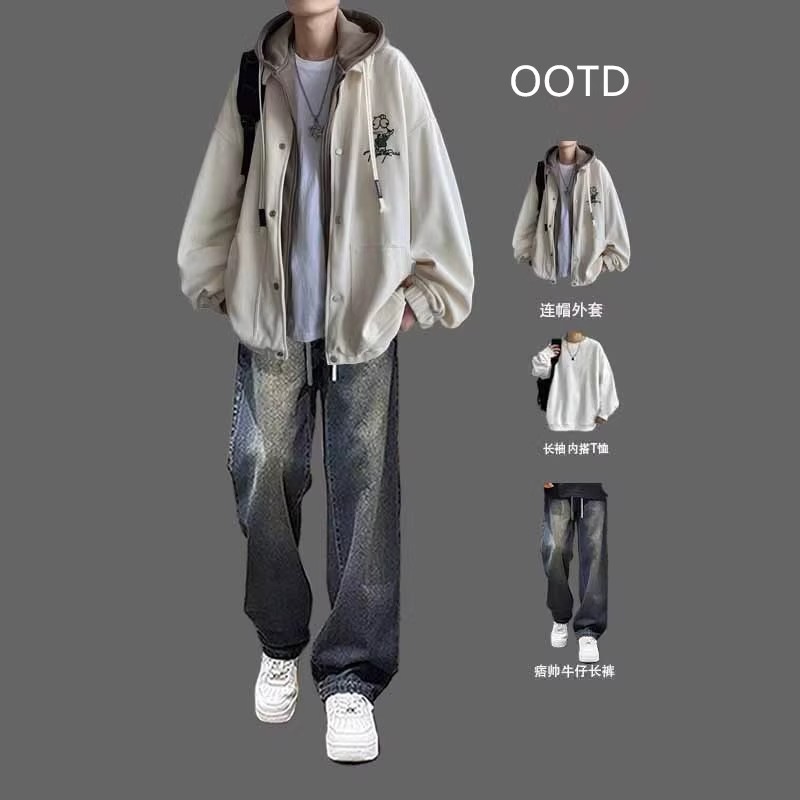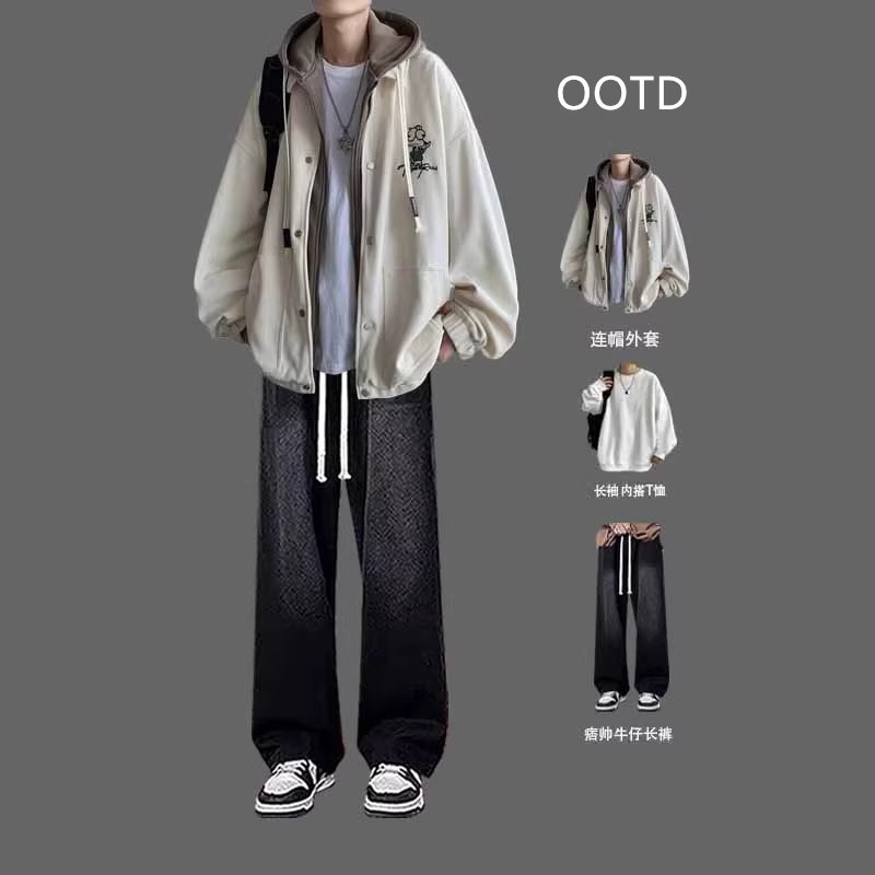 春秋季青少年外套男生套装潮流帅气男装棒球服夹克搭配时髦牛仔裤