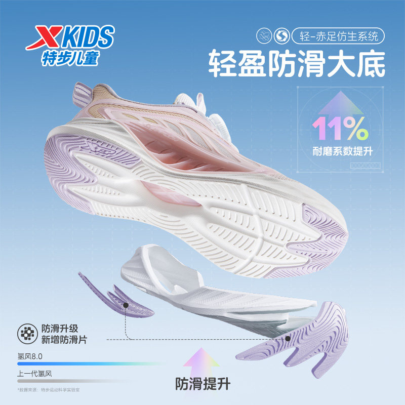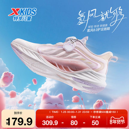 【氢风8.0】特步童鞋儿童新款透气轻便运动鞋女童旋转纽扣跑步鞋