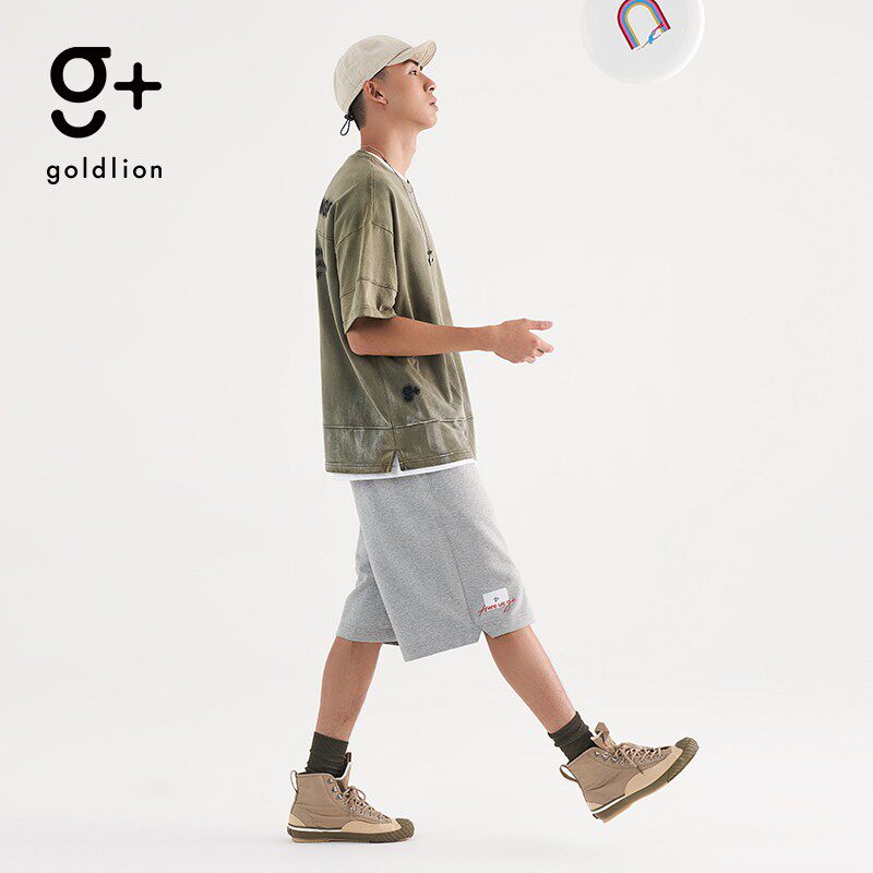 金利来g+新款潮牌花灰色卫裤短裤男简约ins风刺绣休闲裤