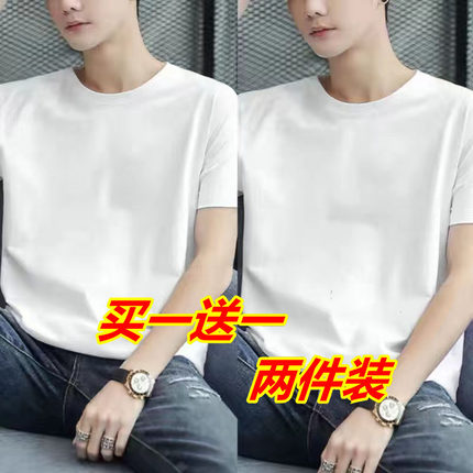 (买一送一)男士大码圆领冰丝打底衫纯色白色短袖t恤男女夏季潮