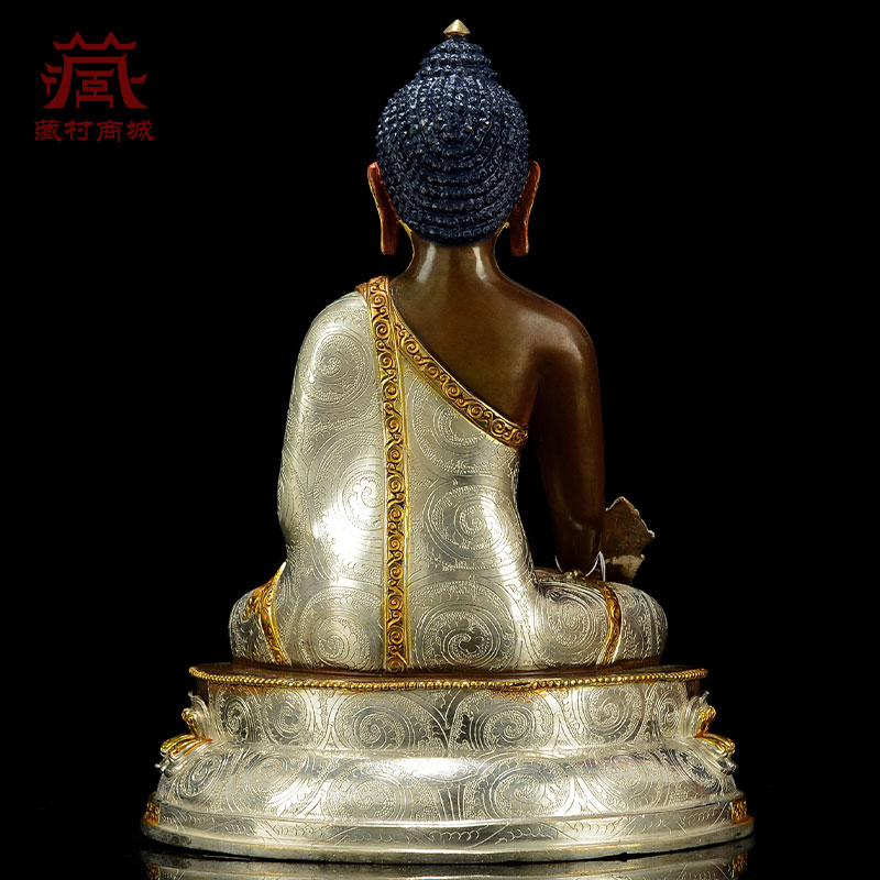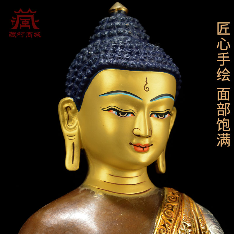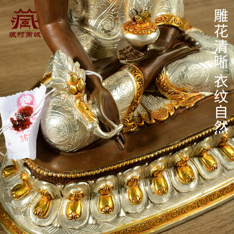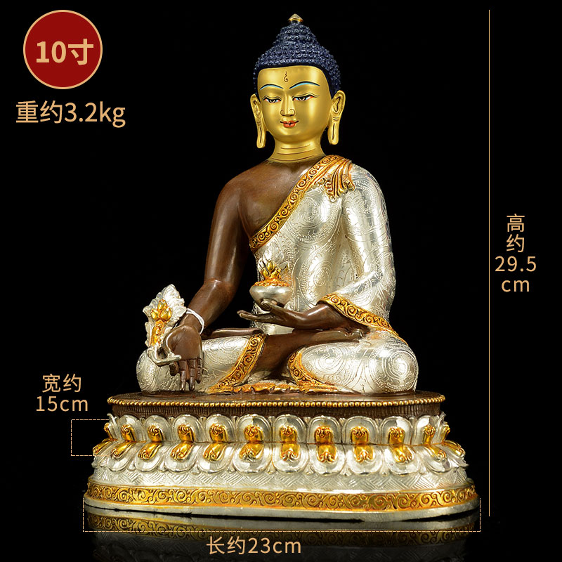 药师佛家用铜像尼泊尔手工10寸紫铜镀金镀银居家铜像