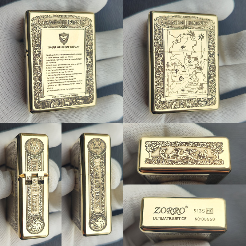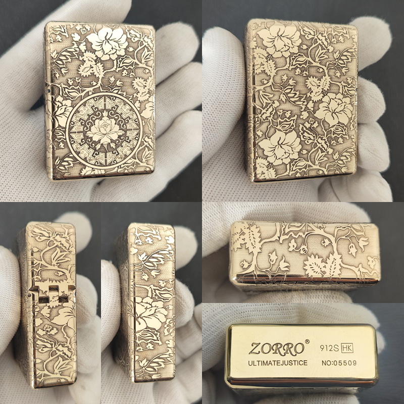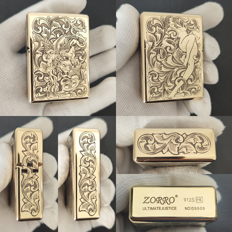 zorro佐罗正品纯铜砂轮防风煤油打火机S重盔甲圆方头招财进宝貔貅