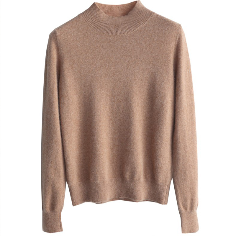 鄂尔多斯市100%纯羊毛衫女半高领冬加厚短款针织打底羊绒衫毛衣女