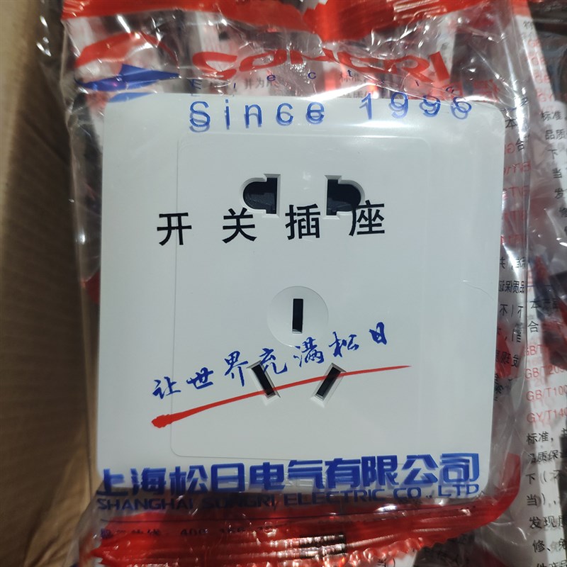 上海松日电气二三眼五孔插座10A墙壁86型强电插白色电源新国标