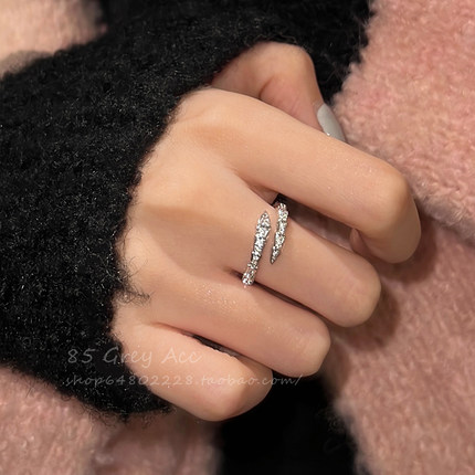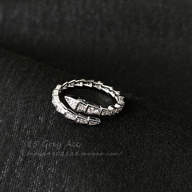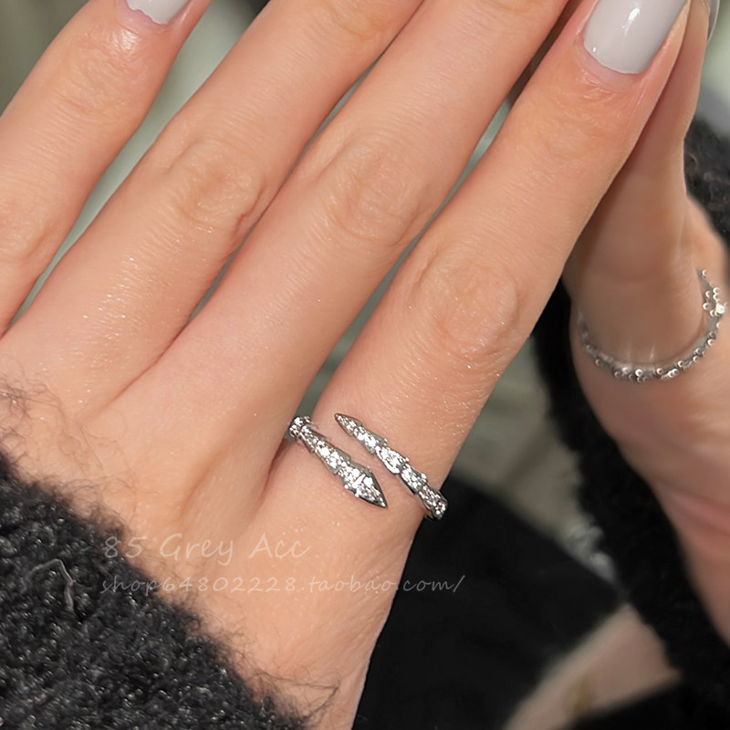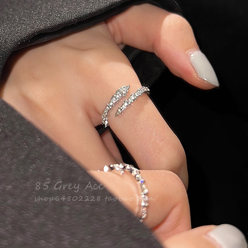 微镶锆石精致蛇形戒指女轻奢高级感开口可调指环超闪高级感食指戒
