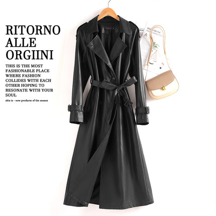 海宁真皮皮衣女中长款过膝风衣秋冬新款绵羊皮大衣气质时尚皮外套
