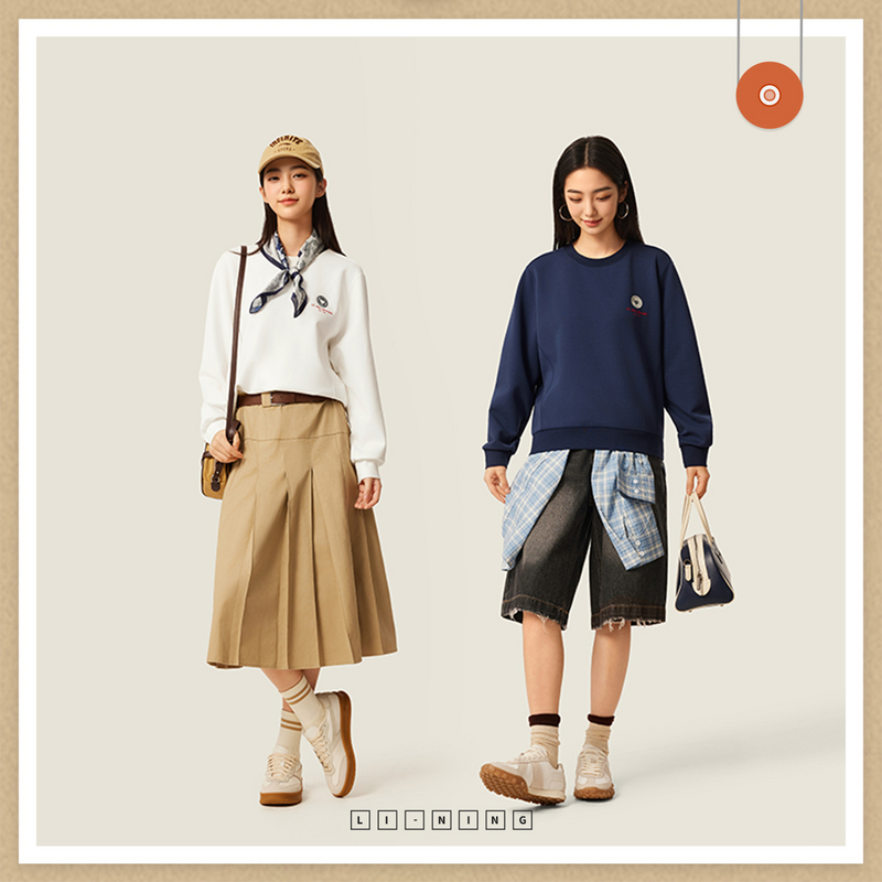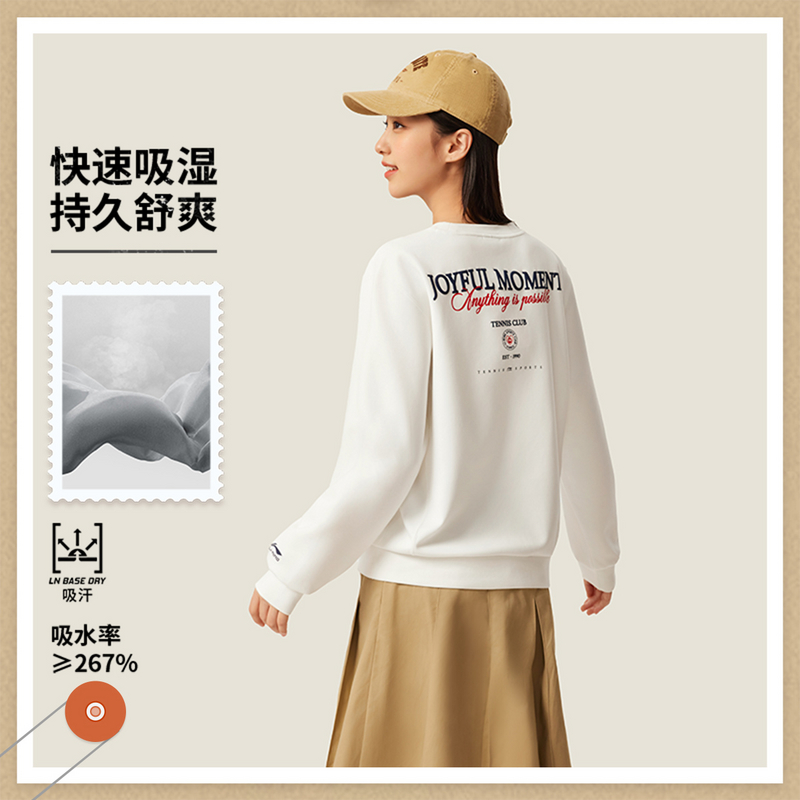 李宁女子2025秋季新款运动潮流系列吸汗舒适宽松套头卫衣AWDV536