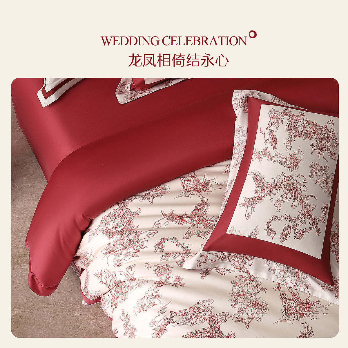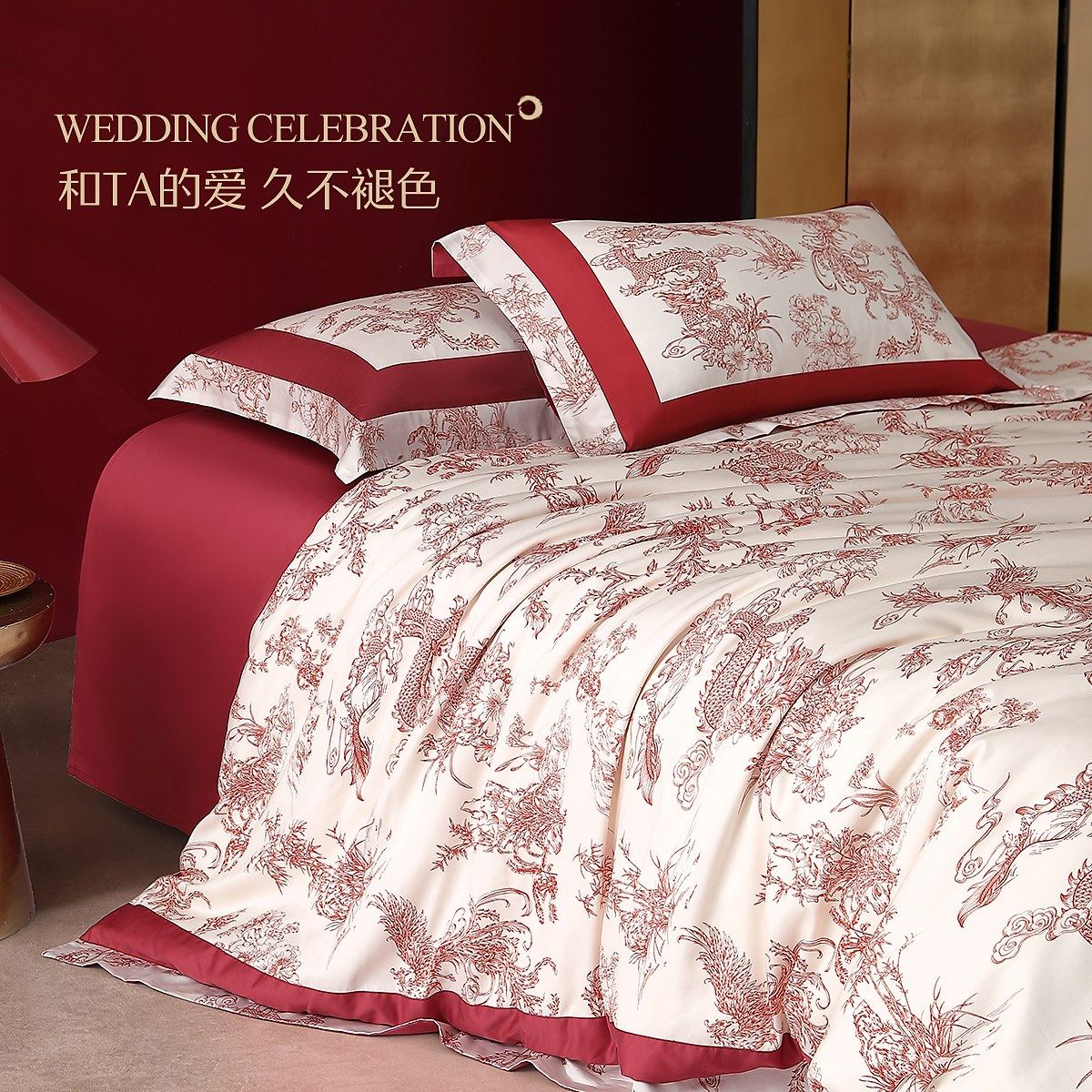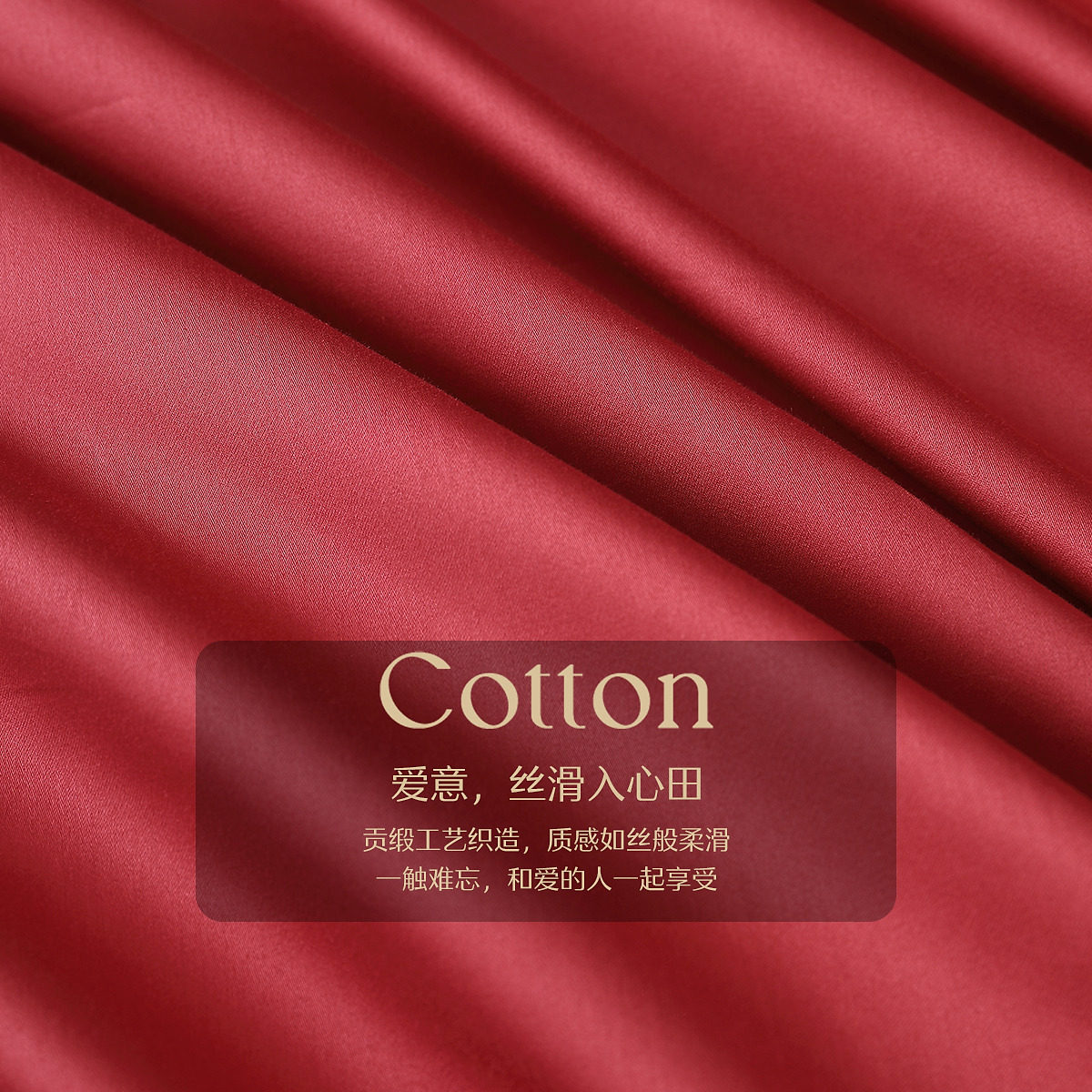 水星家纺婚庆四件套100S双股长绒棉贡缎套件红色结婚喜庆轻奢床品