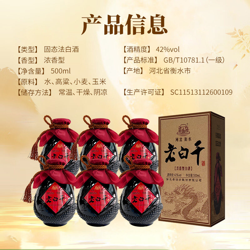衡水老酒坊特产老白干42/52度浓香型纯粮食酿造白酒节日送礼