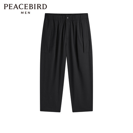 太平鸟男装 条纹肌理感休闲裤青纯色柔软百搭直筒裤宽松裤子