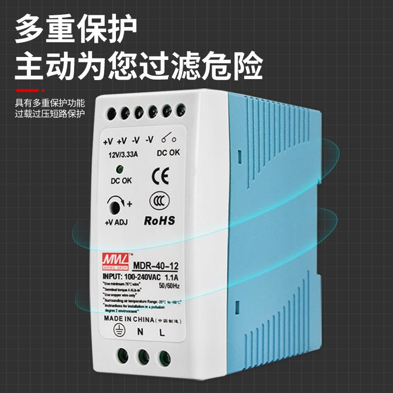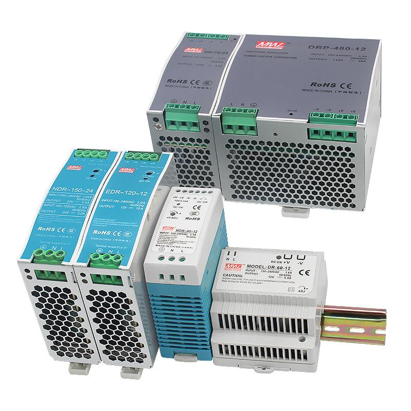 明纬EDR/NDR轨道导轨式开关电源24V直流可调变压器220v转12V5/10A
