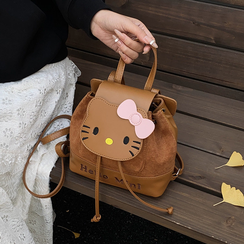 新款女孩韩版潮流小猫双肩包翻盖单肩手提包潮流豹纹儿童出游背包