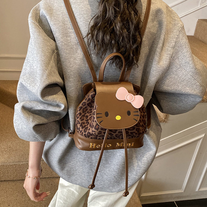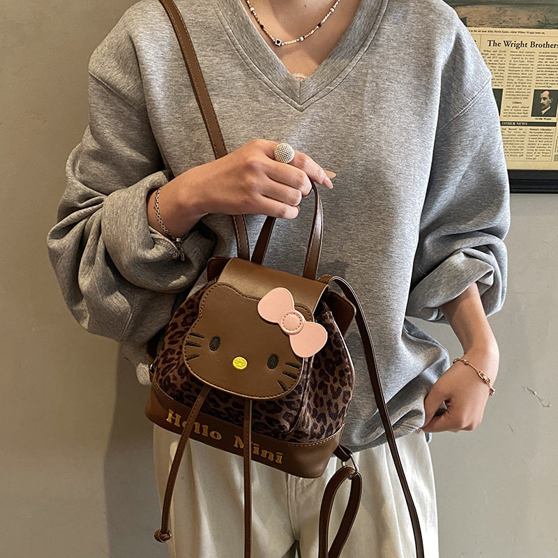 新款洋气豹纹小猫翻盖双肩出游包