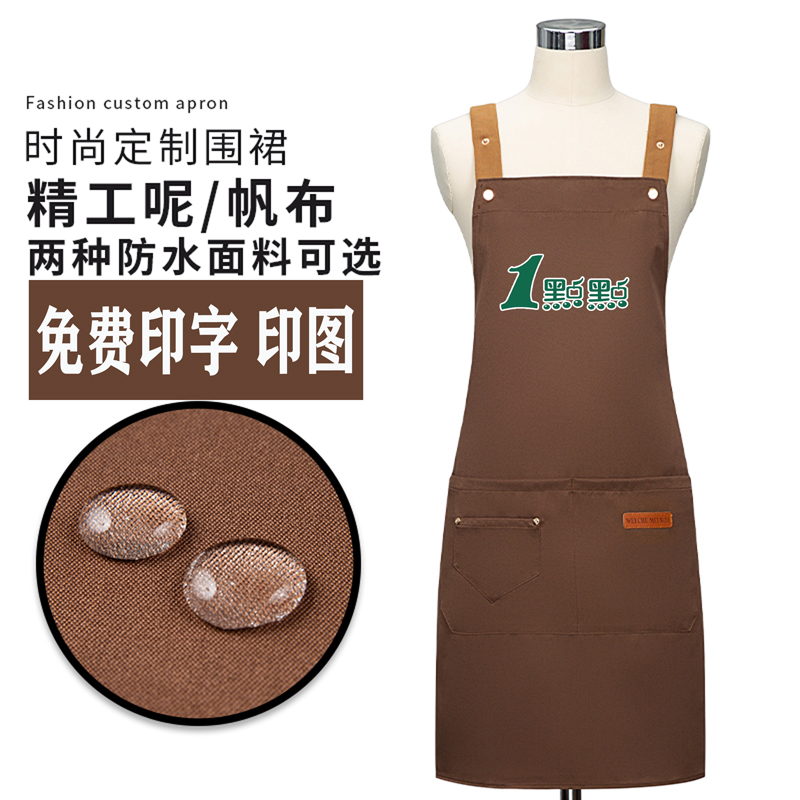 围裙定制工作服印绣LOGO服务员餐饮店专用厨房防水纯棉女围腰订做