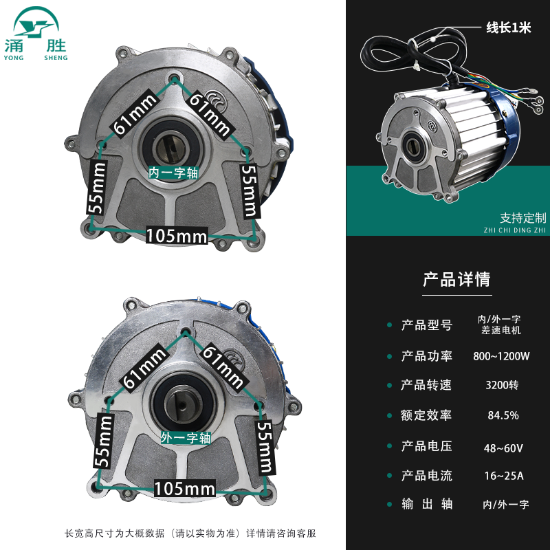 电动三轮车差速电机直流48v无刷改装高速通用60V内一字电动机马达