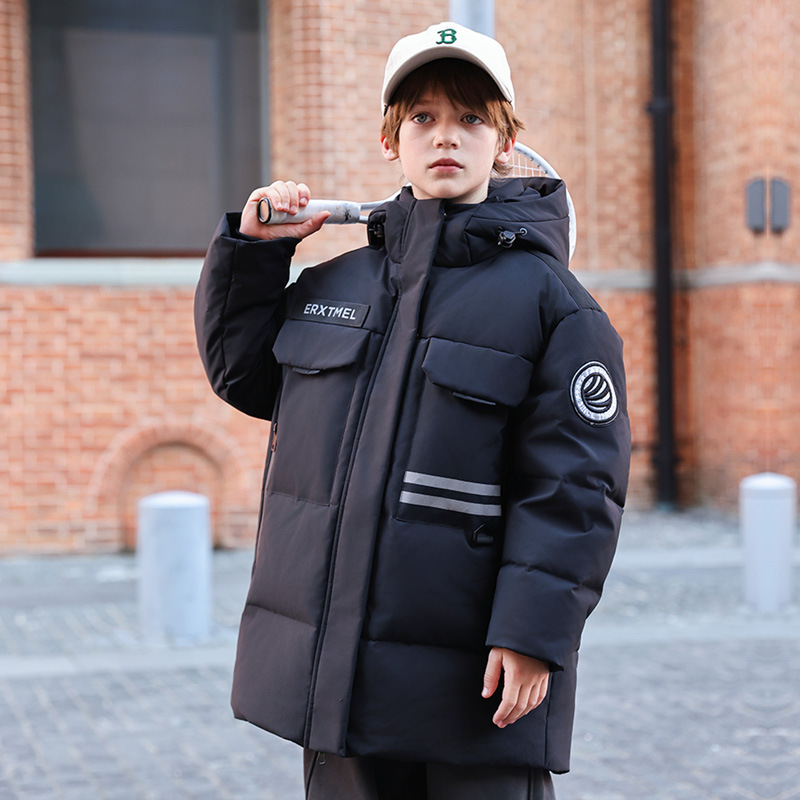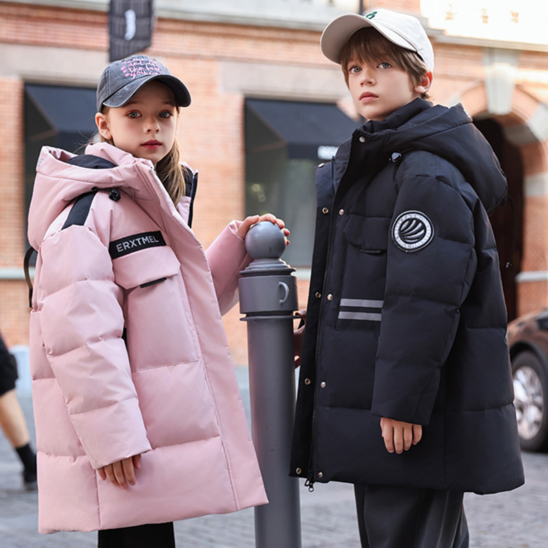 新款中长款儿童女童波丝登羽绒服中大男童装冬季加厚白鸭绒外套