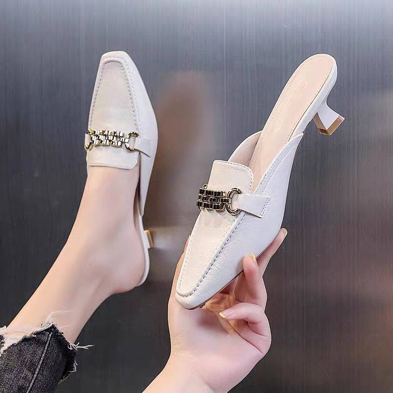 半拖鞋女夏外穿2025新款春季百搭时尚高跟女鞋女包头中跟粗跟单鞋