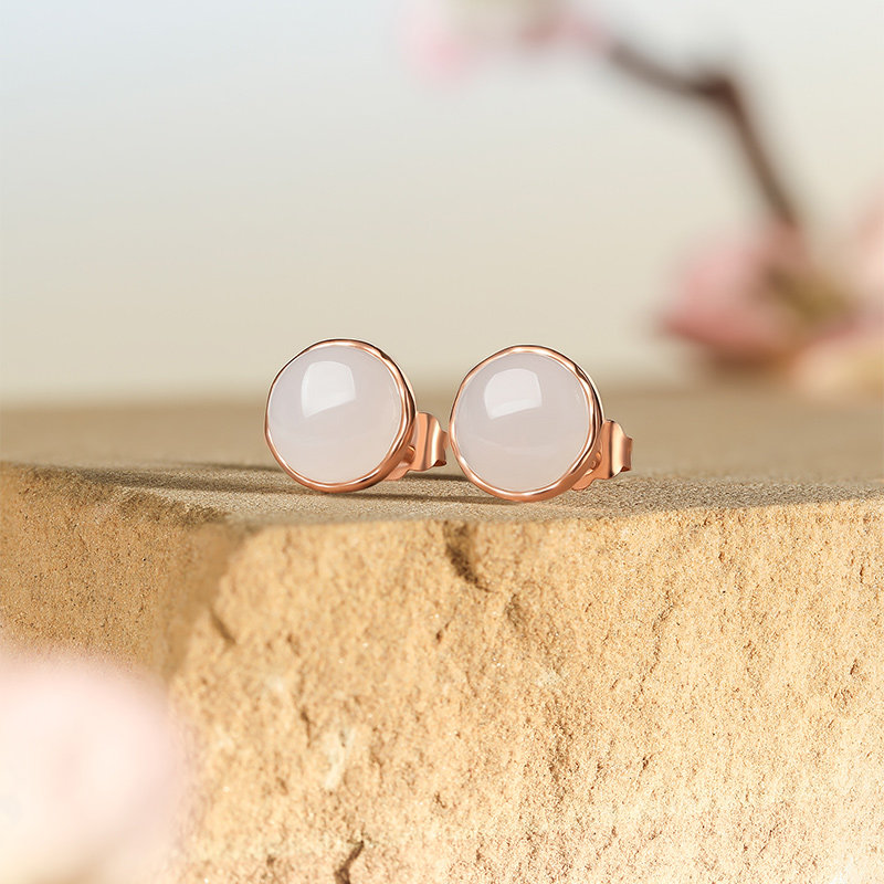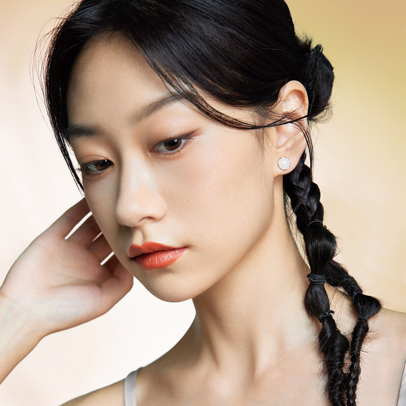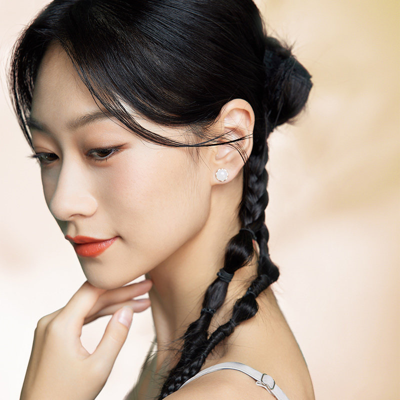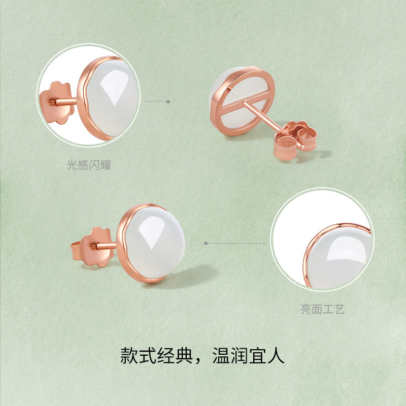 周六福和田玉耳饰金镶玉红18K金白玉温润玉珠耳钩节日礼物