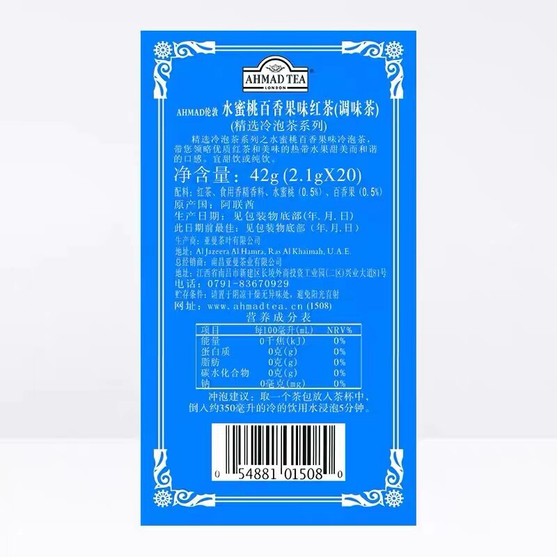 AHMADTEA亚曼水蜜桃百香果柠檬芒果荔枝红茶绿茶夏日冷泡袋泡茶包