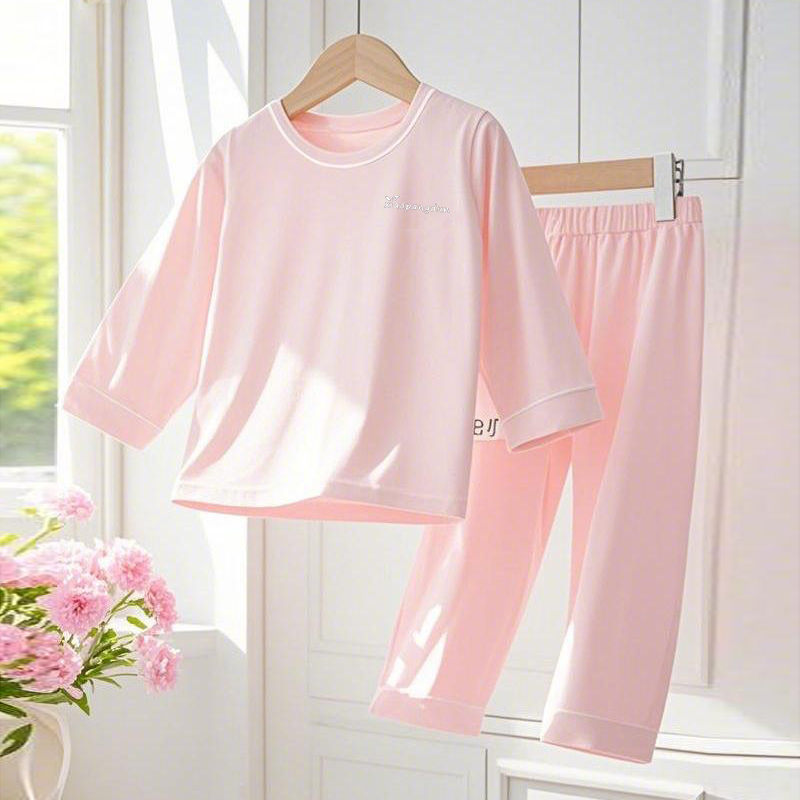 夏款儿童A类莫代尔空调服男孩女童无骨八分睡衣裤套装人棉家居服