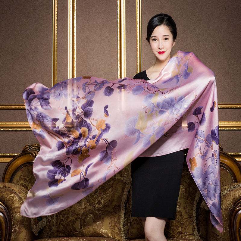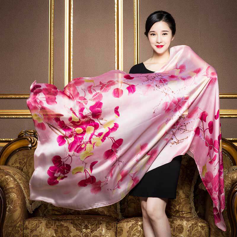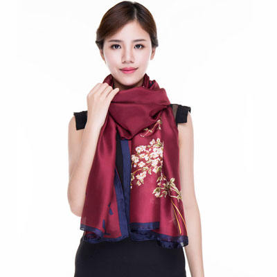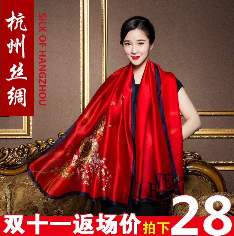 杭州丝绸丝巾女士保暖丽锦缎丝缎大红色春秋冬季披肩百搭围巾两用