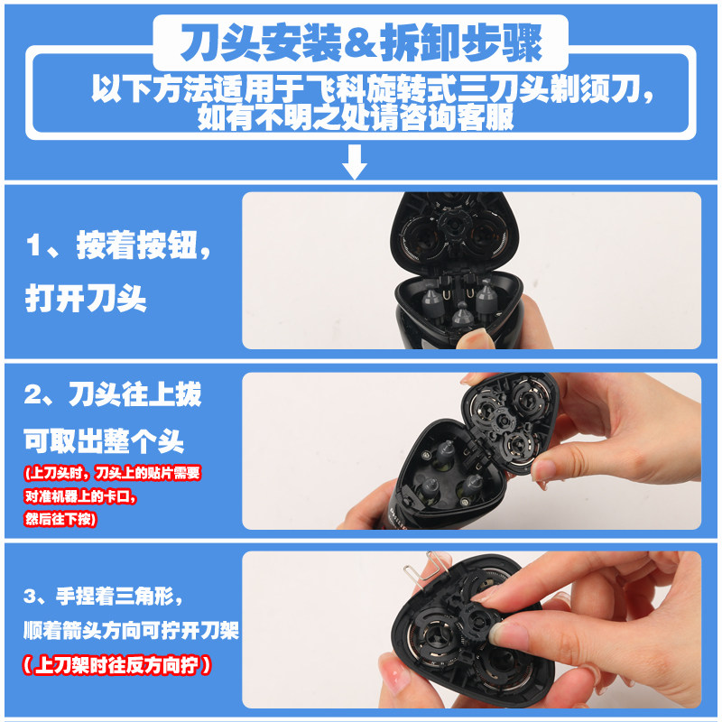 适配飞科剃须刀刀头刀片3头2头电动刮胡刀fs373 339 372头部配件
