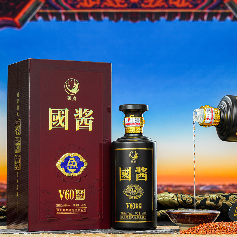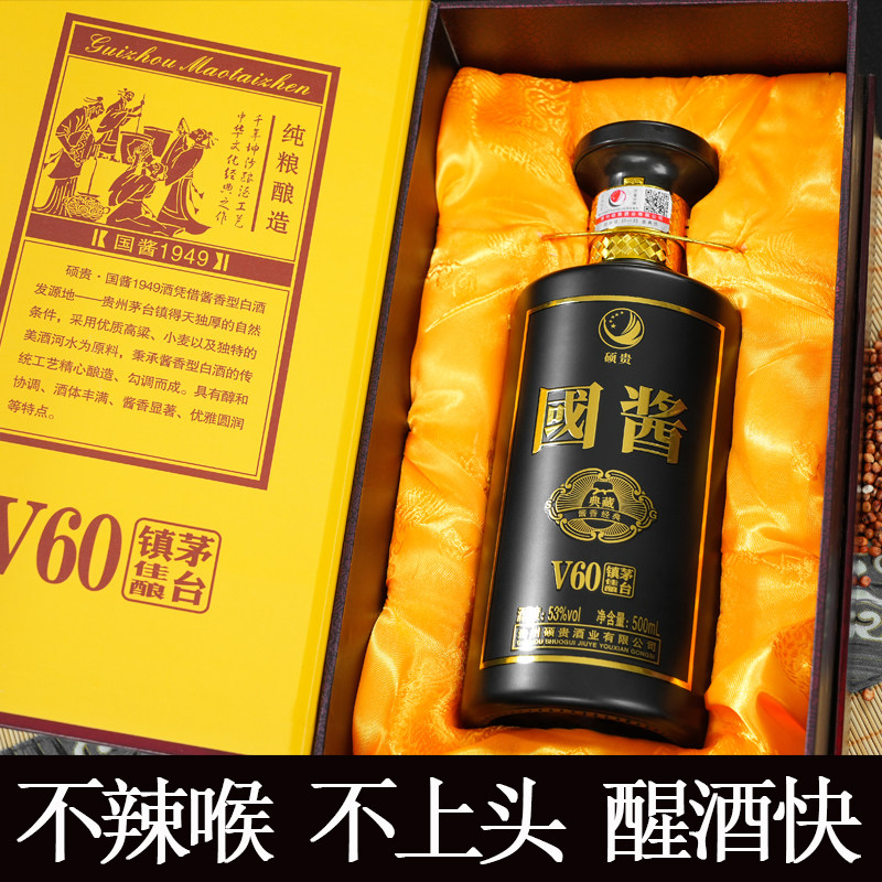 硕贵酱香型白酒贵州纯粮食原浆老酒53度单瓶500ml送礼自饮国酱V60