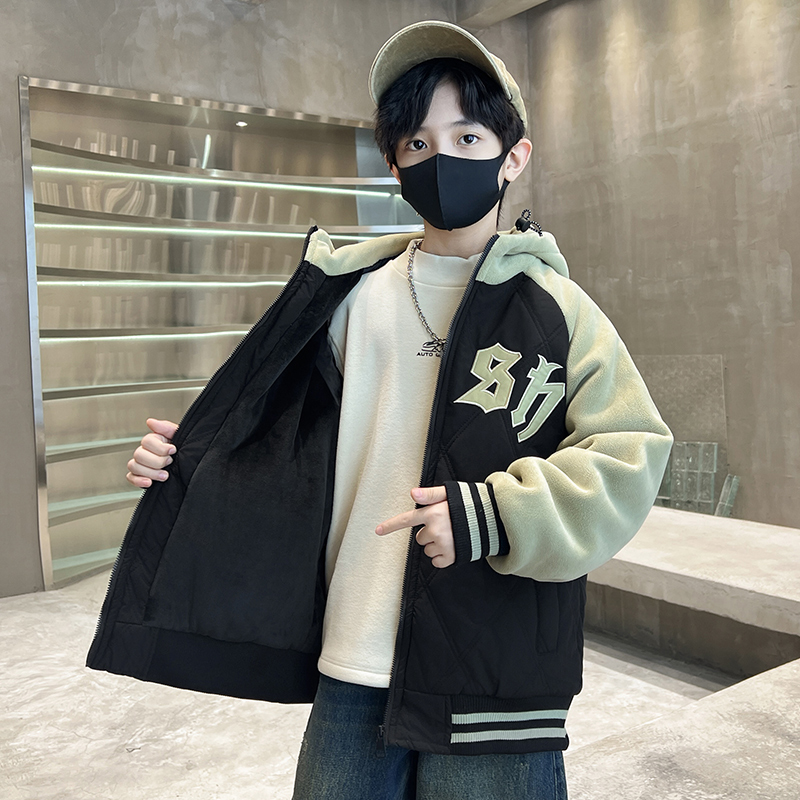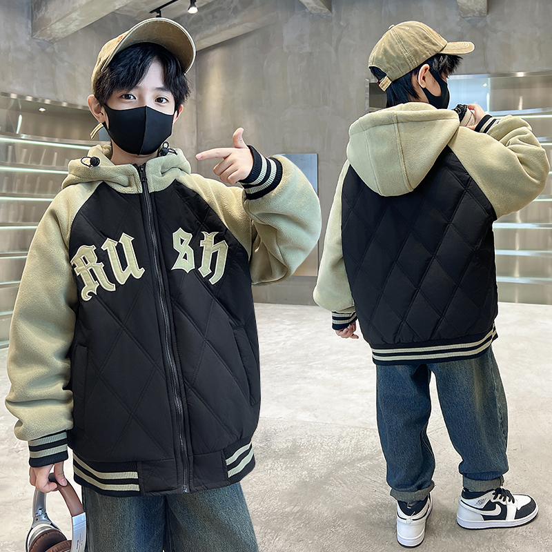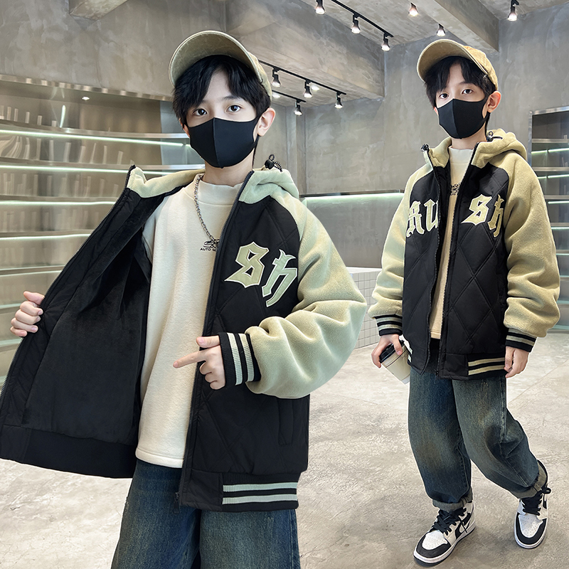 童装男童棒球服加绒秋冬款2025新款冬季大童加厚外套男孩青少年潮