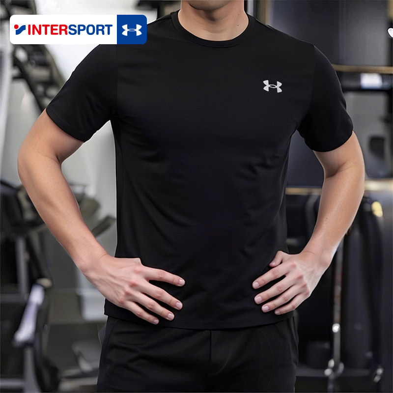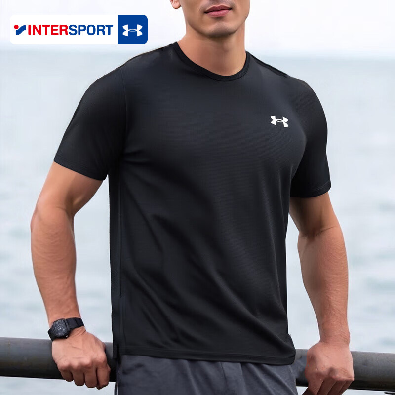 UA安德玛黑色T恤男士速干衣跑步运动服健身训练上衣圆领半袖短袖
