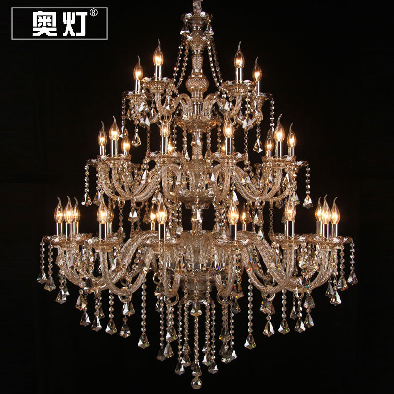 奥灯欧式蜡烛水晶吊灯大客厅三层工程别墅复式楼梯玻璃长吊灯8923