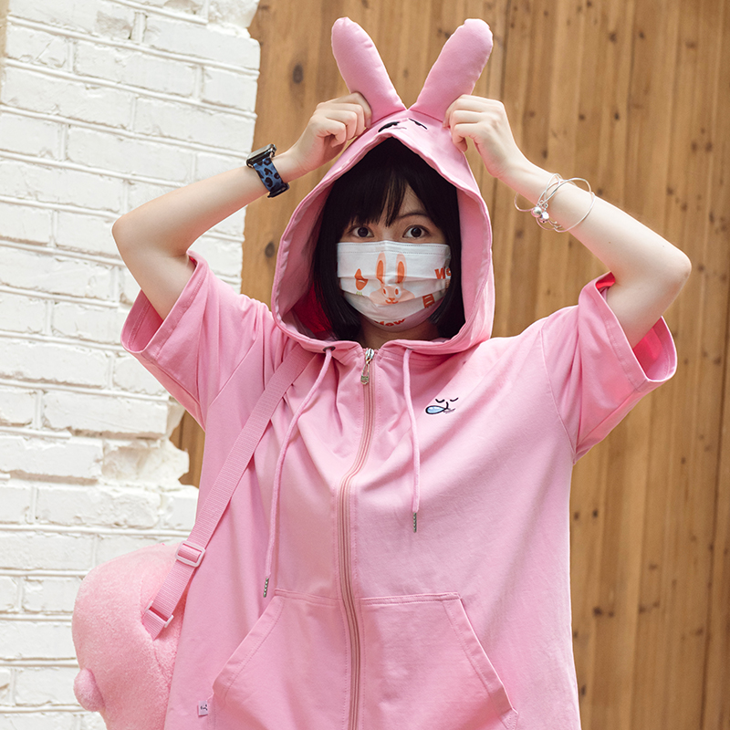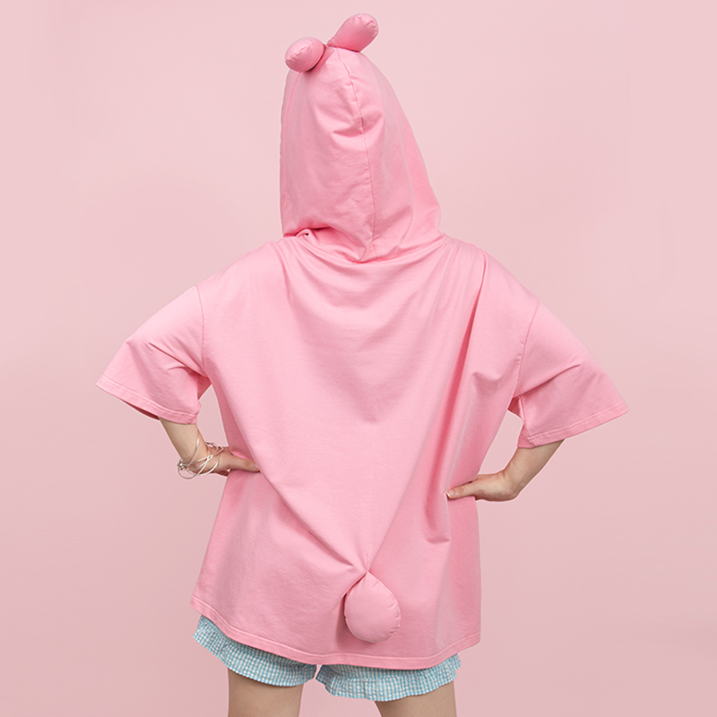粉红兔子MyFriend原创短袖连帽卫衣可爱女生卡通夏季粉色半袖T恤