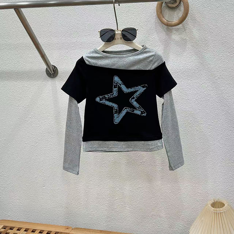 女童秋装牛仔裤套装2025新款T恤洋气大童春秋款儿童阔腿裤两件套