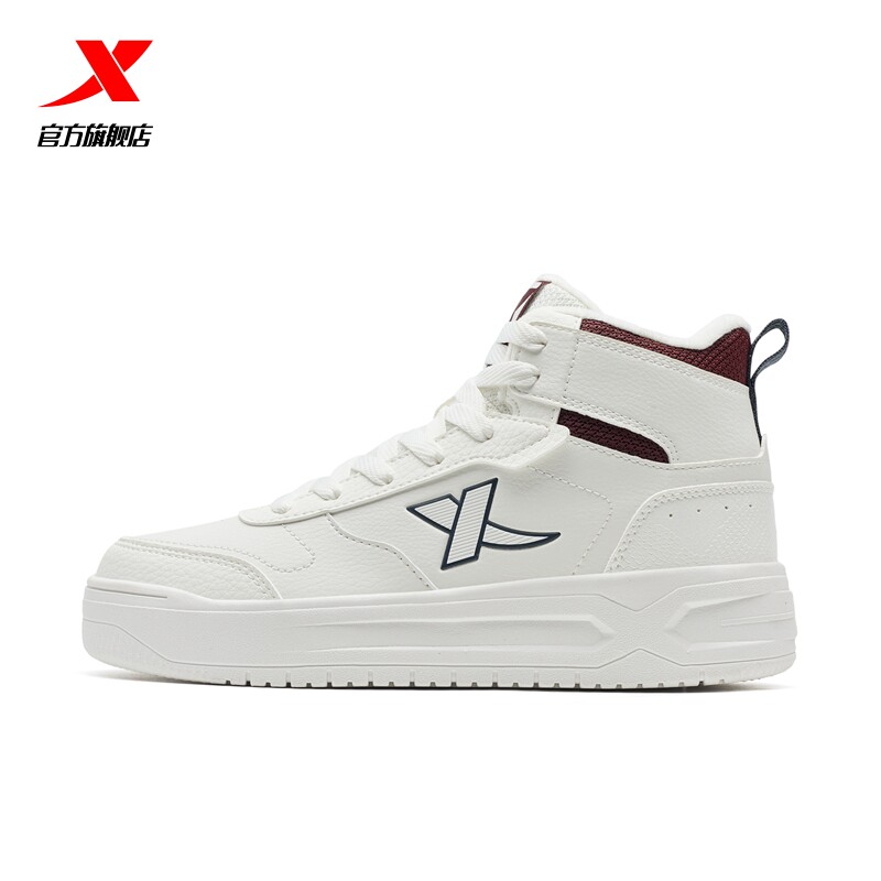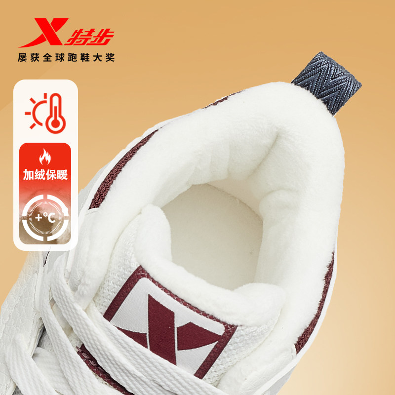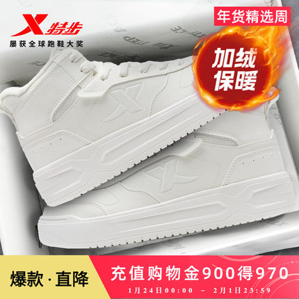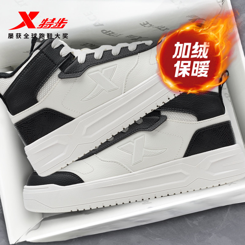 特步板鞋加绒加厚高帮男女二棉鞋冬季板鞋女鞋时尚保暖运动休闲鞋