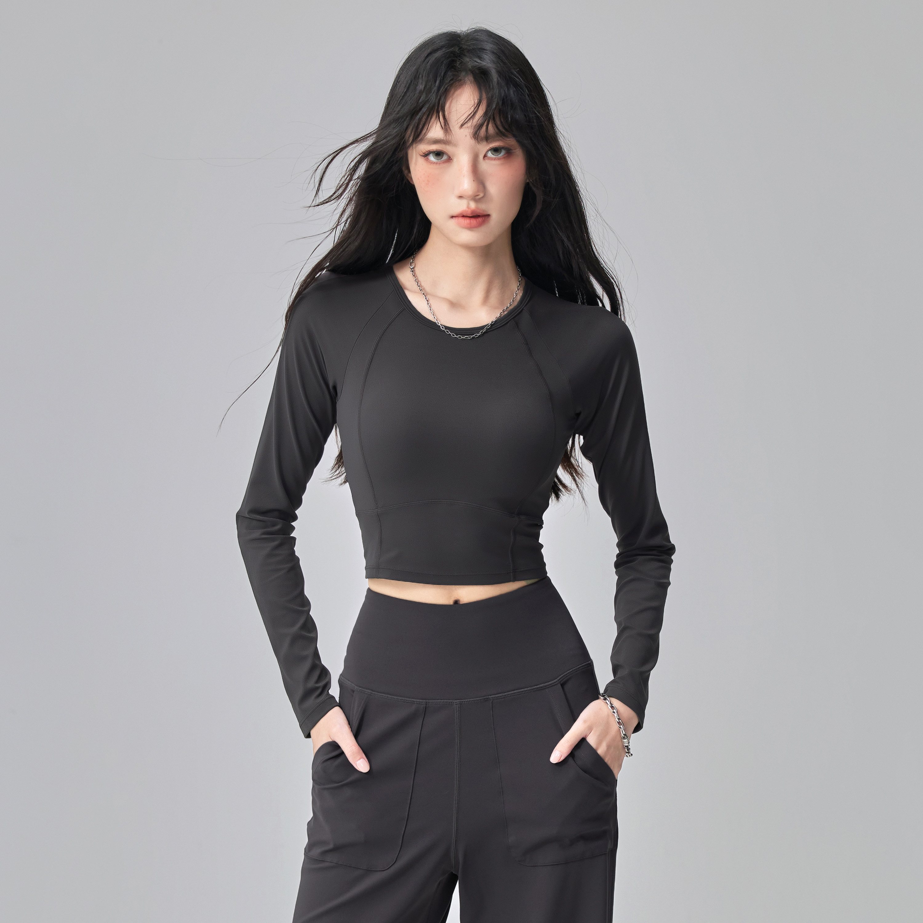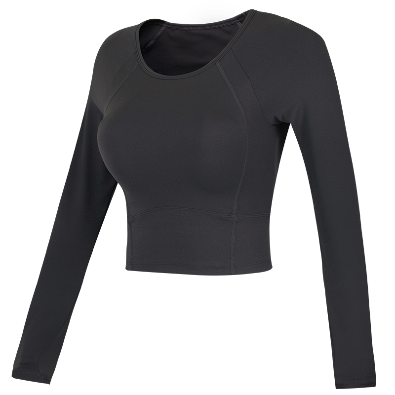云端贝壳带胸垫健身长袖女紧身运动T恤跑步普拉提训练瑜伽服上衣
