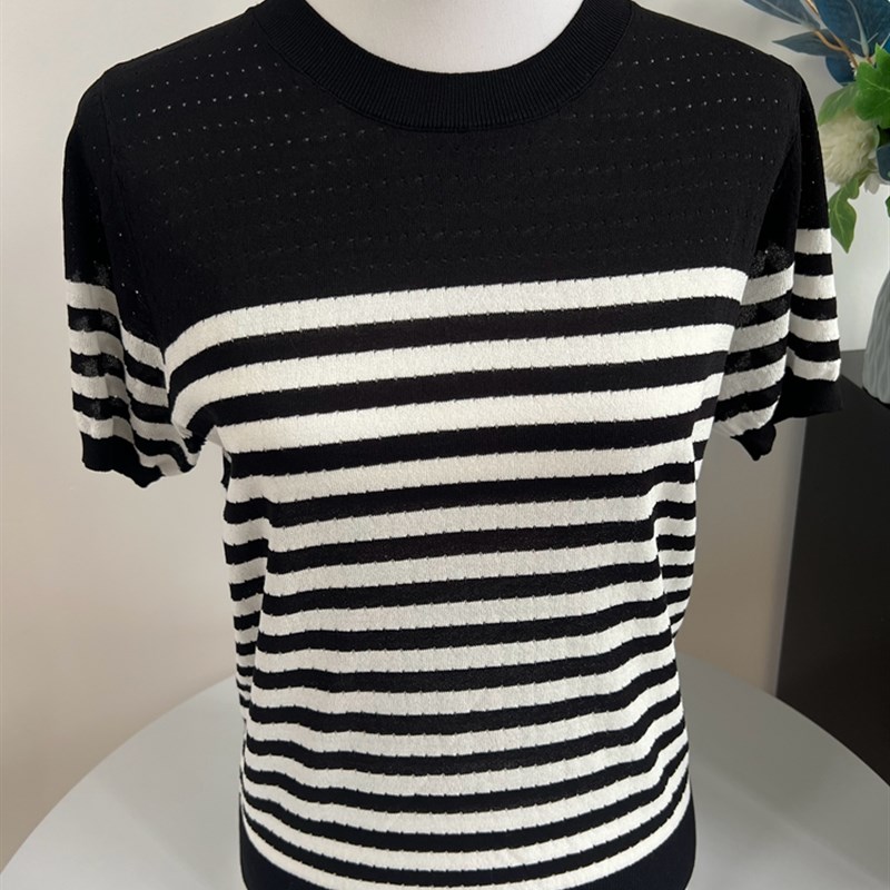 高贵妈妈装夏季薄款圆领套头T恤短袖针织弹力宽松中老年条纹上衣