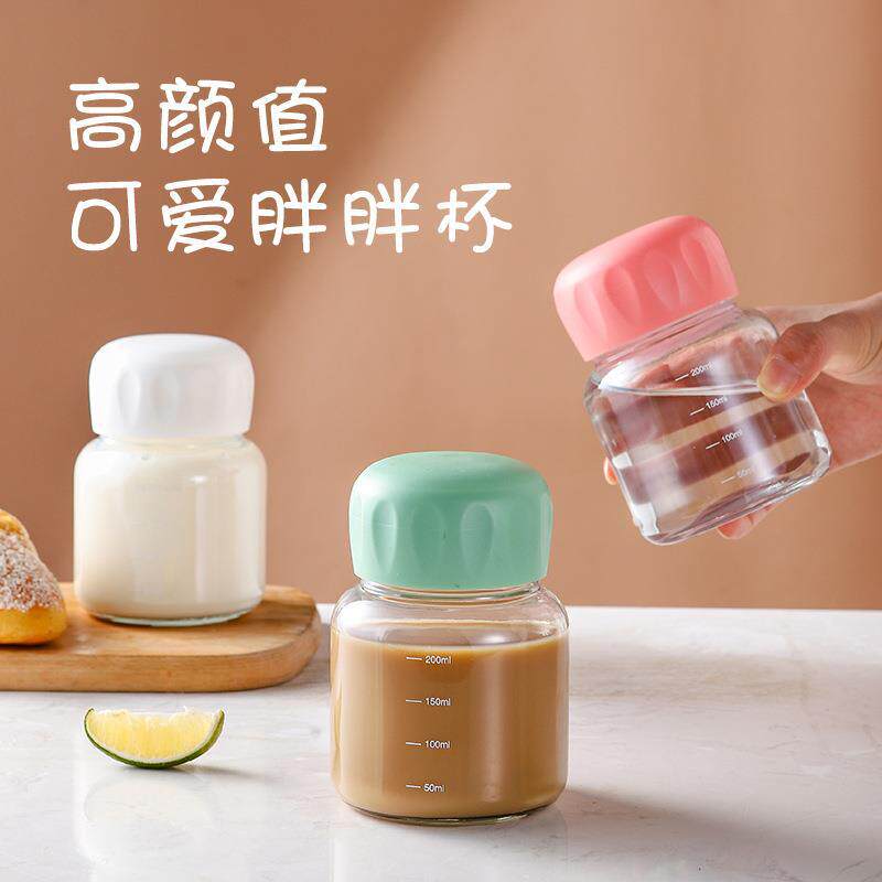 胖胖杯带刻度高硼硅玻璃水杯随身携带分装小胖杯咖啡礼品 豆浆杯
