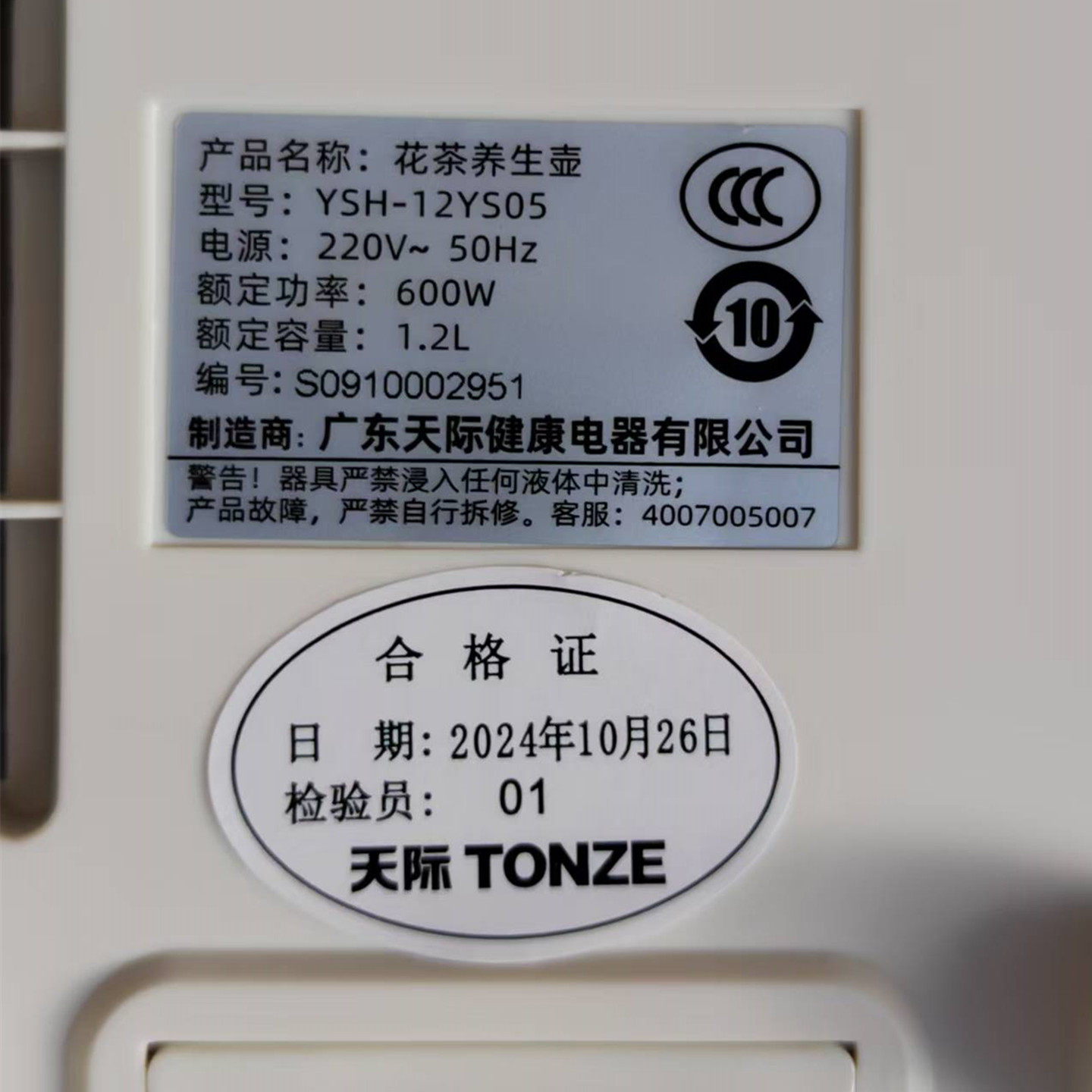原装天际YSH-12YS05花茶养生壶玻璃壶高硼硅 泡茶 参茶 甜品1.2升