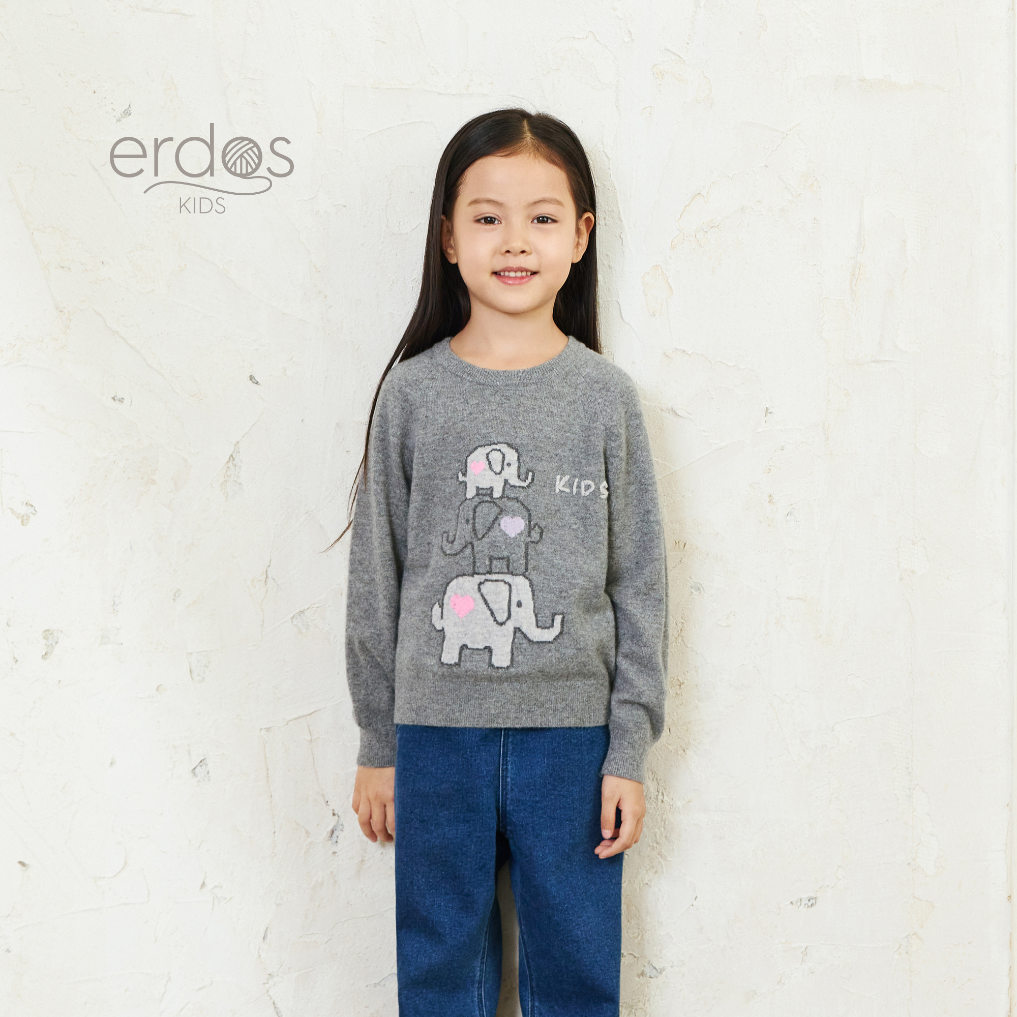 【100%山羊绒】鄂尔多斯童装25秋冬新品圆领装饰提花儿童针织套衫