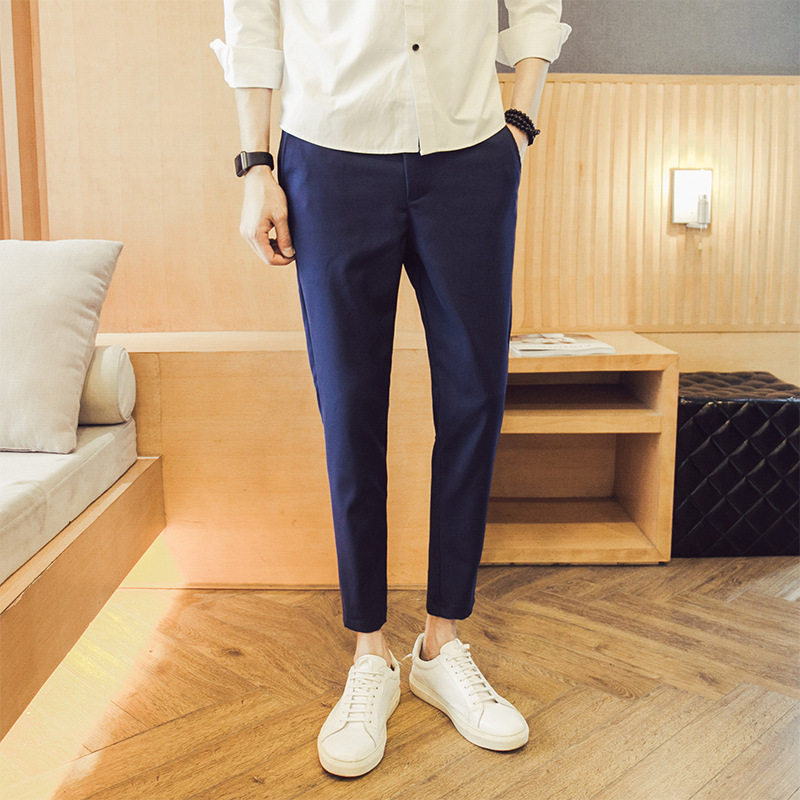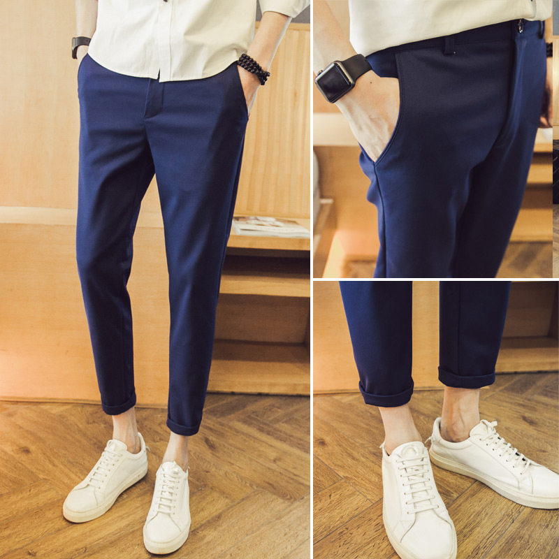 春秋季韩版修身显瘦9分小脚裤哈伦裤抗皱垂感西裤九分裤男休闲裤