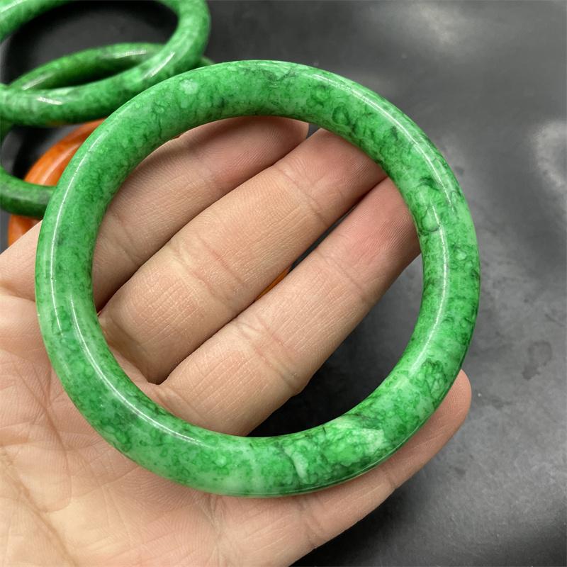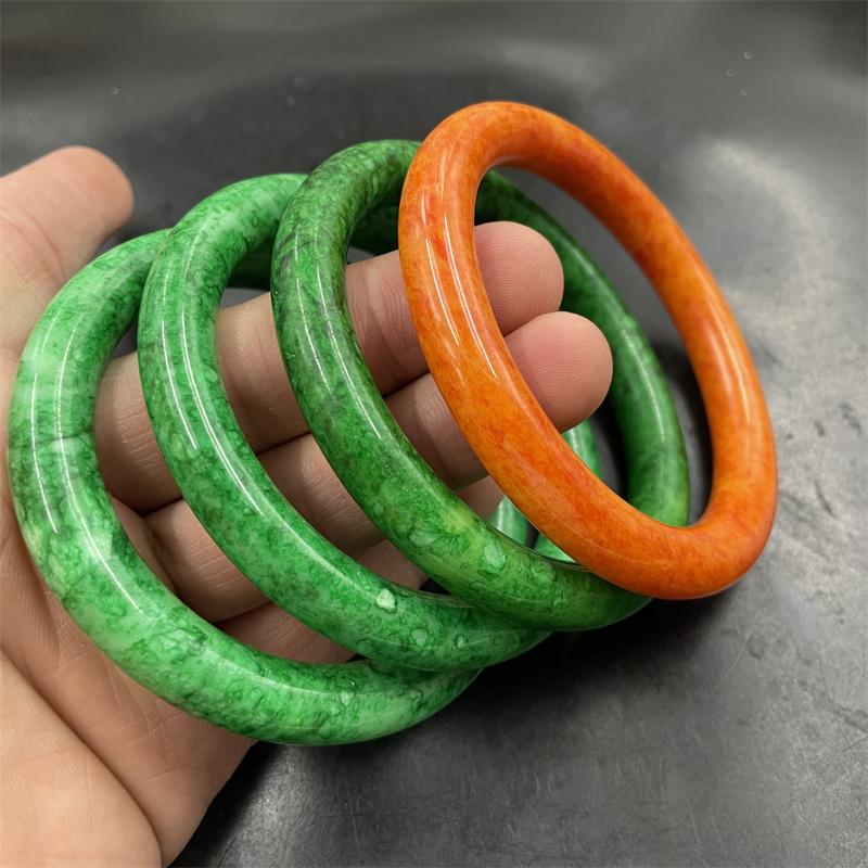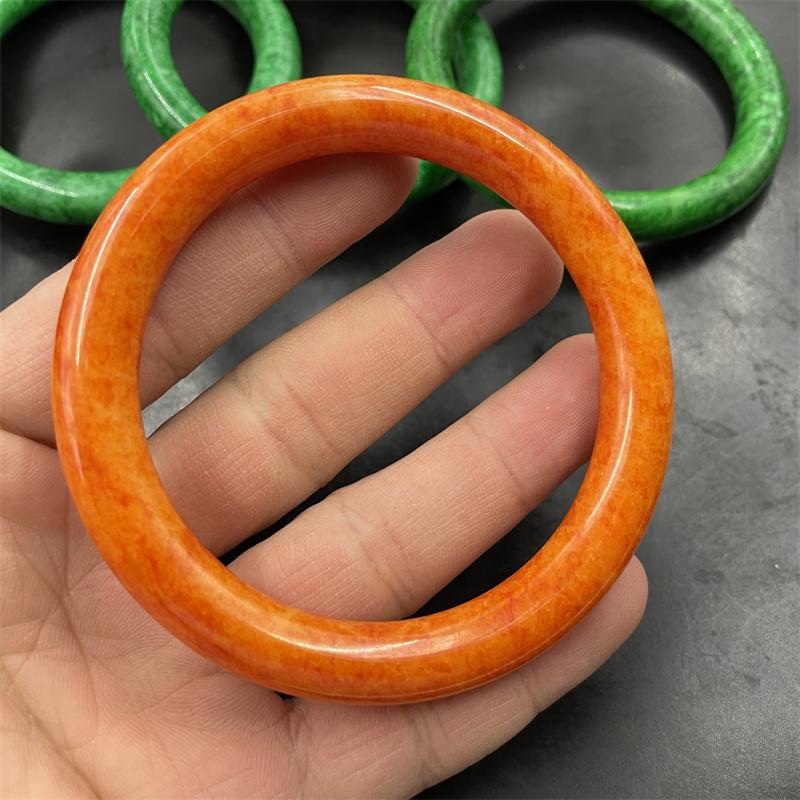 四海玉器 满绿色干青翠玉圆条手镯 中大号橙色玉手镯 玉镯 特价