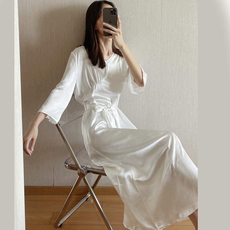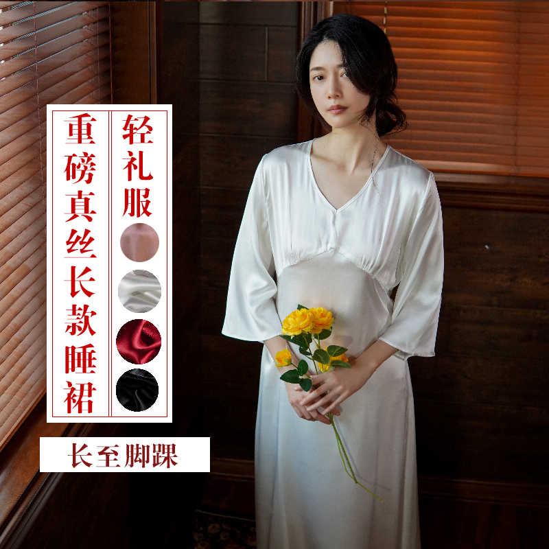 高级感真丝睡衣女外贸重磅19姆桑蚕丝中袖家居装外穿睡裙长婚礼