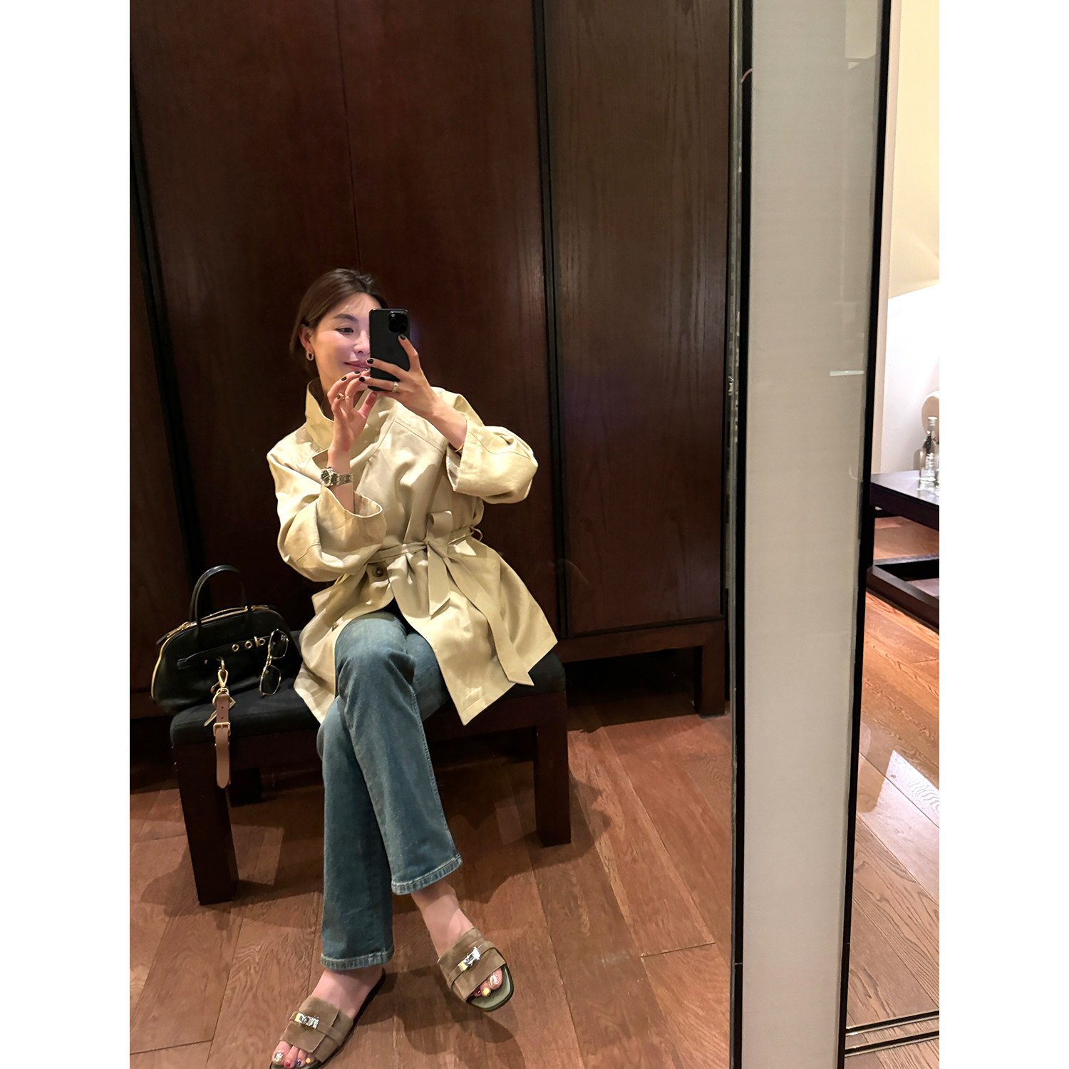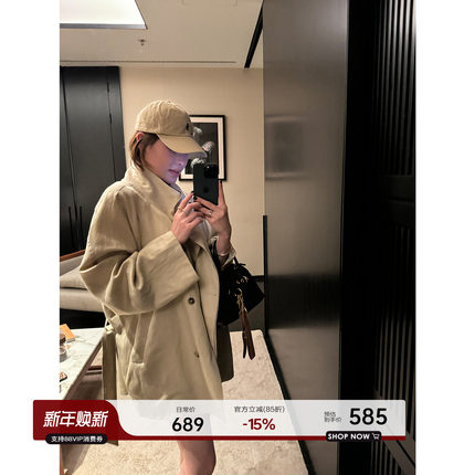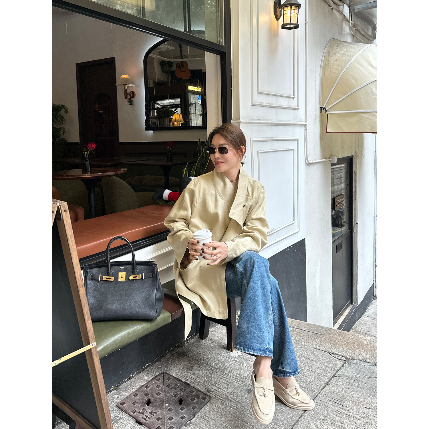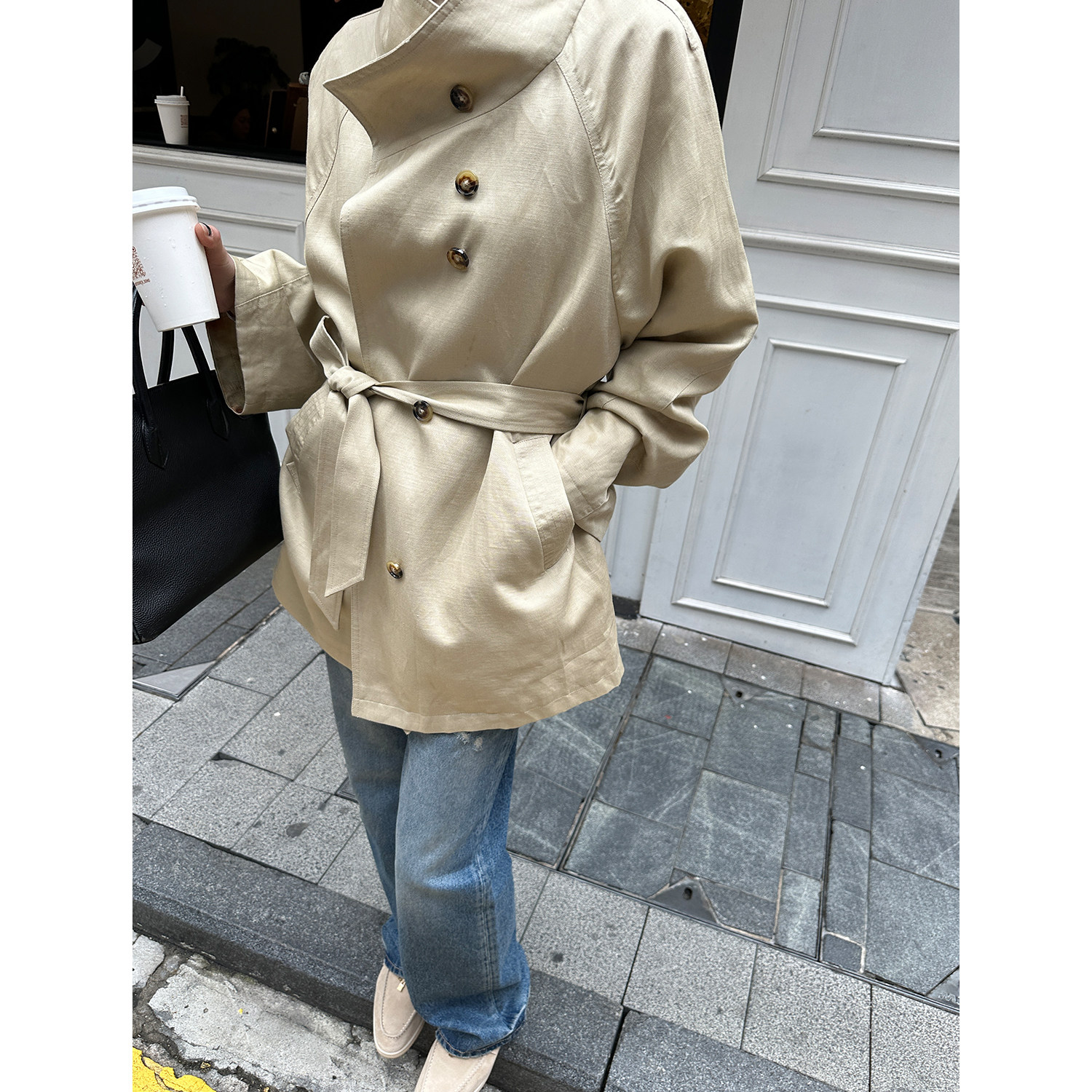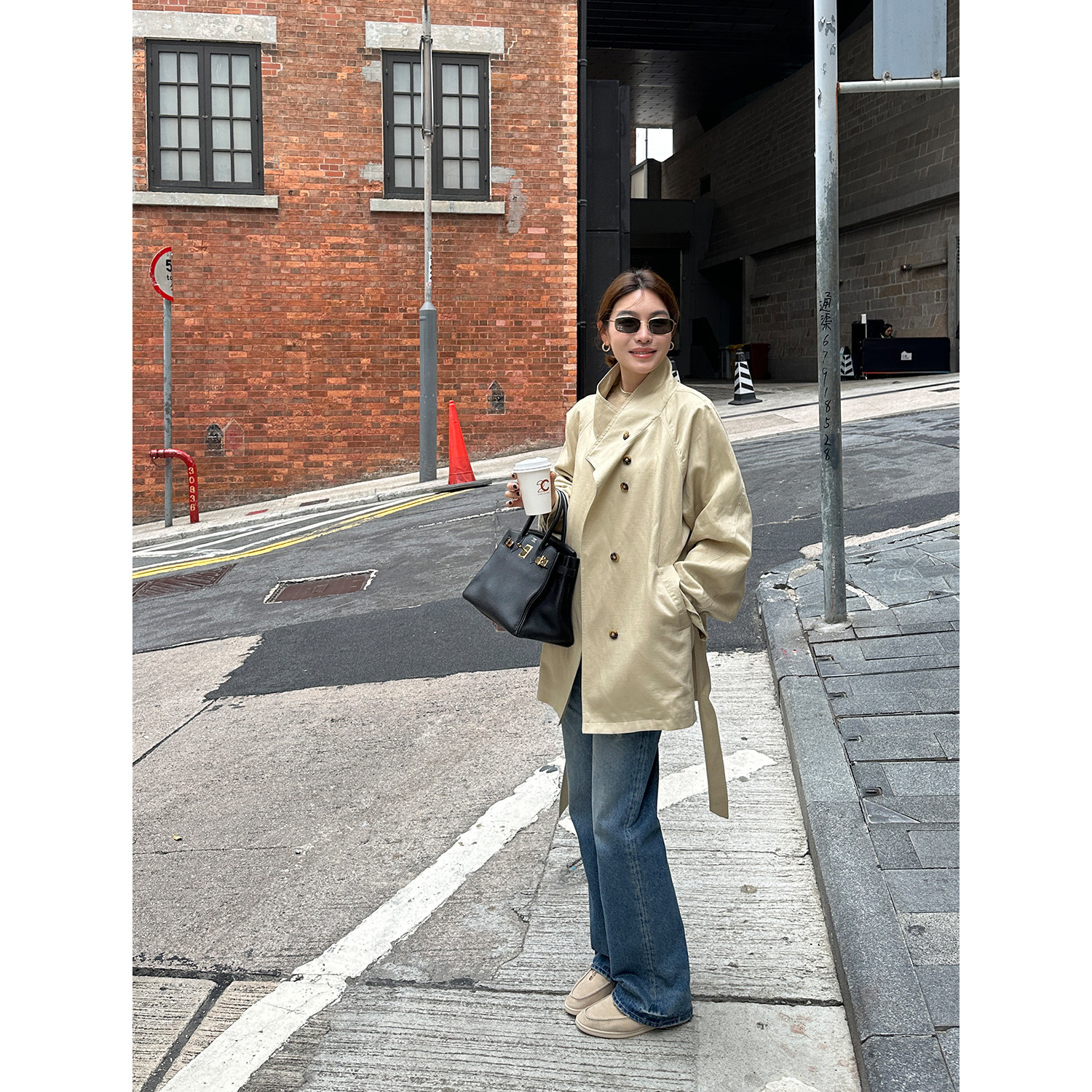 YANGLE_亚麻风衣女款2025年新款秋季插肩袖宽松廓形立领休闲外套