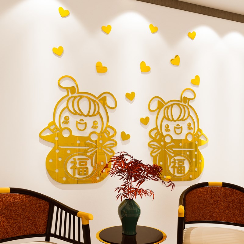 2025春节蛇新年装饰品福字墙壁贴纸画电视背景O客厅3d立体自粘家