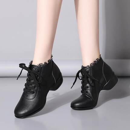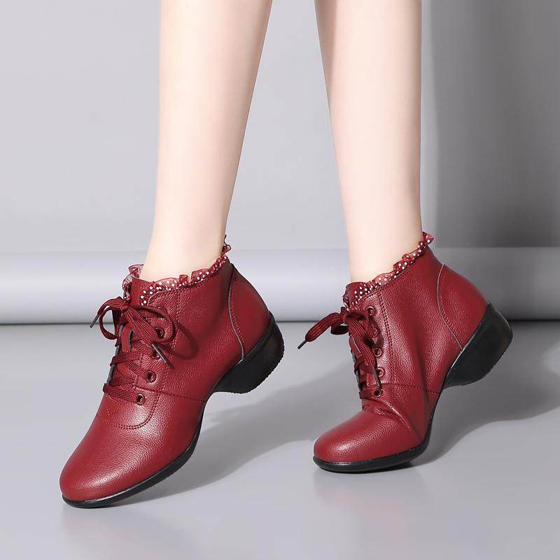 秋冬加绒低帮舞蹈鞋女软底成人外穿广场舞鞋室外跳舞鞋水兵舞靴子