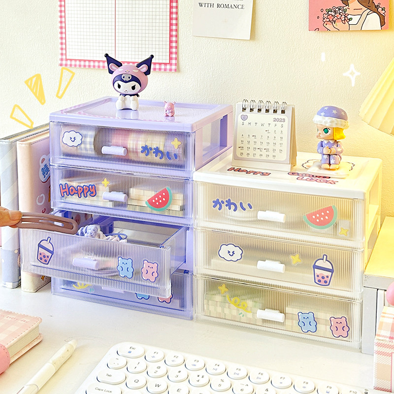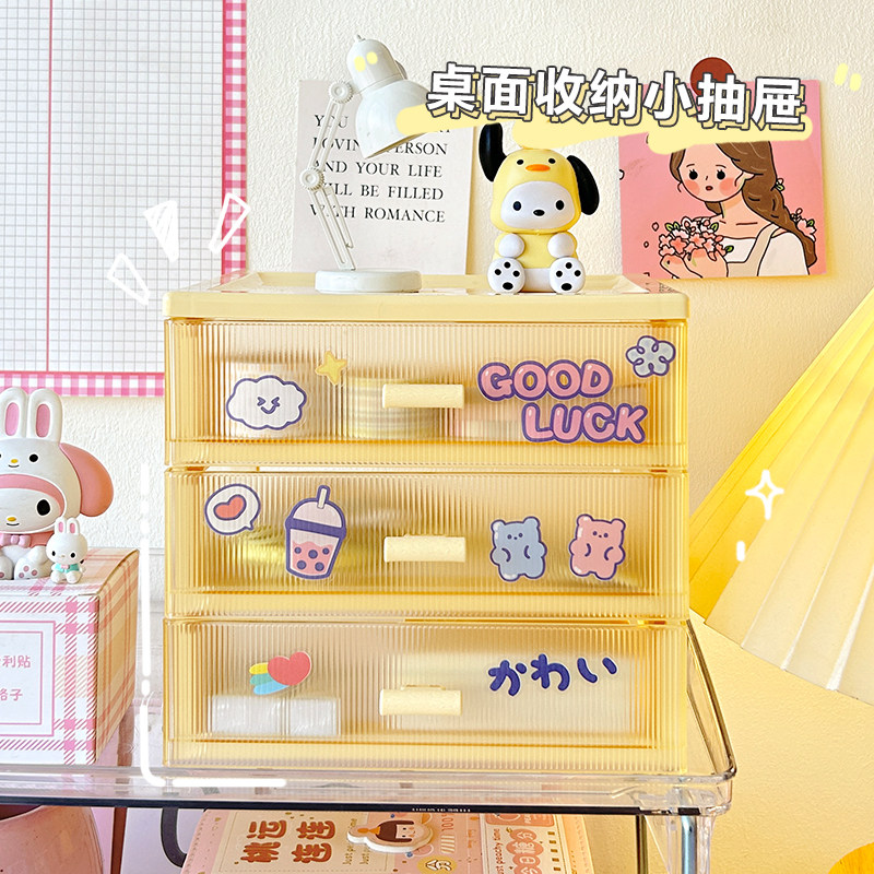 桌面收纳盒抽屉式透明学生文具化妆品办公室书桌整理小盒子置物架