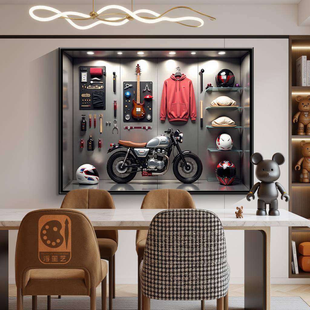 摩托车挂画高级感led带灯壁画电竞房网咖机车挂画男孩卧室装饰画