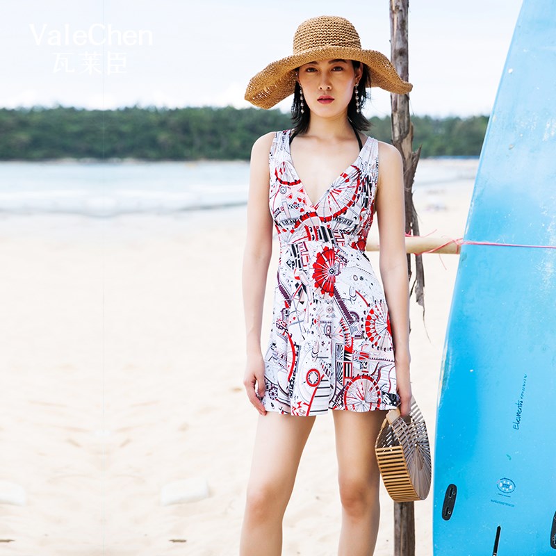 女泳衣遮肚显瘦小胸聚拢连体式泡温泉带钢托带胸垫保守裙式游泳衣
