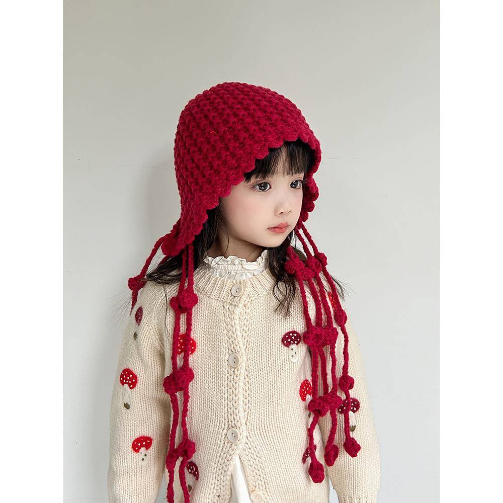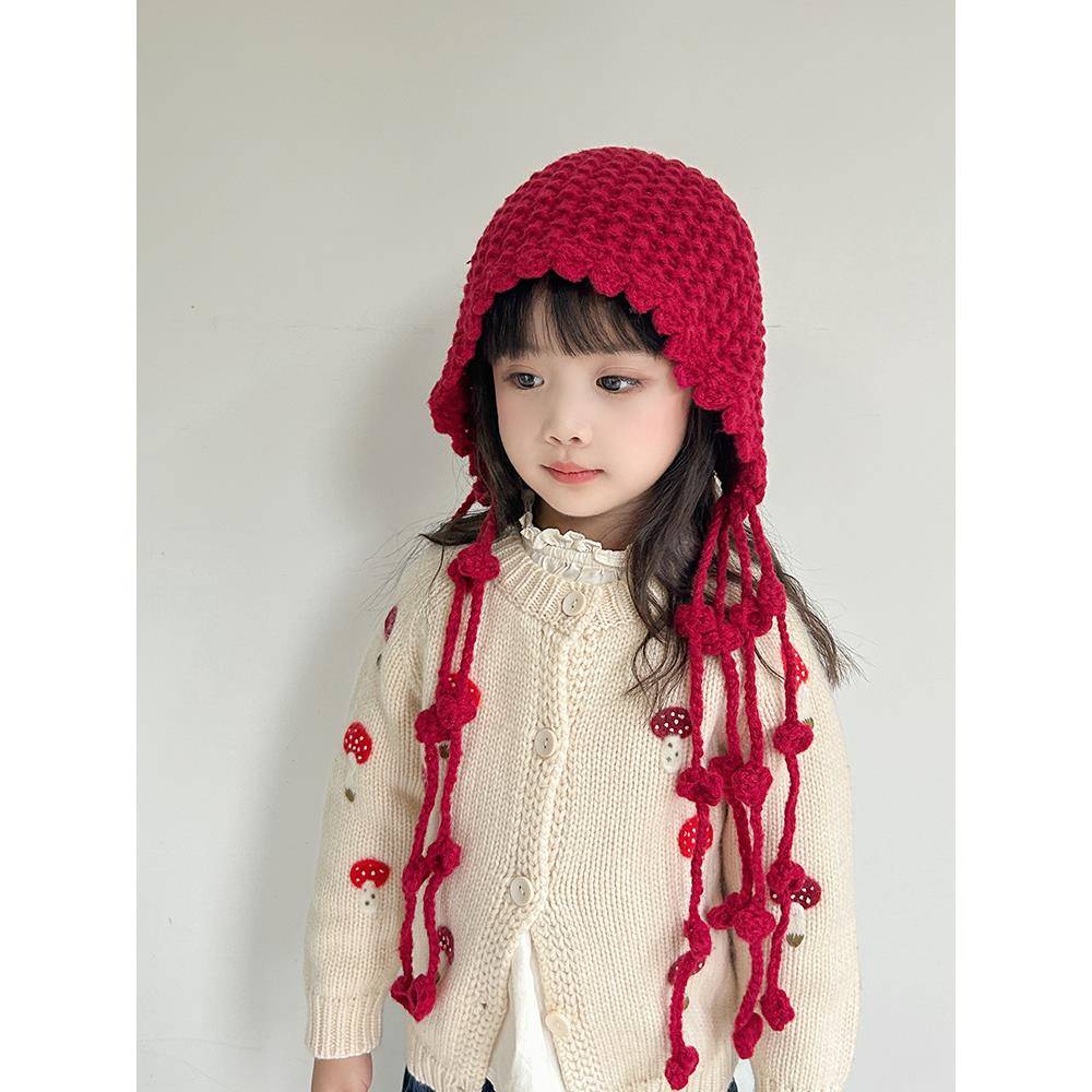 2025新款儿童帽子秋冬款女童宝宝毛线帽小女冬孩针织帽护耳帽季